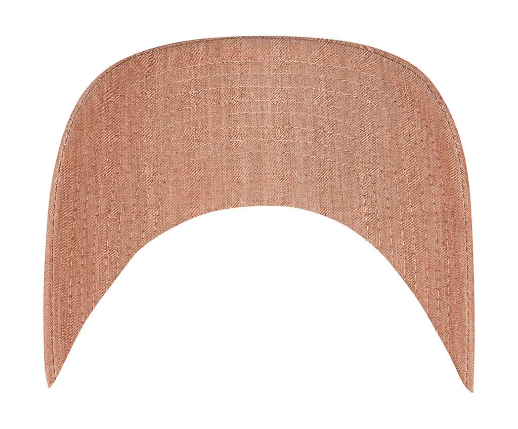 ·208 g/m² ·72% Polyester, 22% Viscose, 6% Elastane ·Melange optic ·6 panels ·Peak with 8 rows of stitching ·Matching undervisor ·Precurved peak ·Snapback closure.