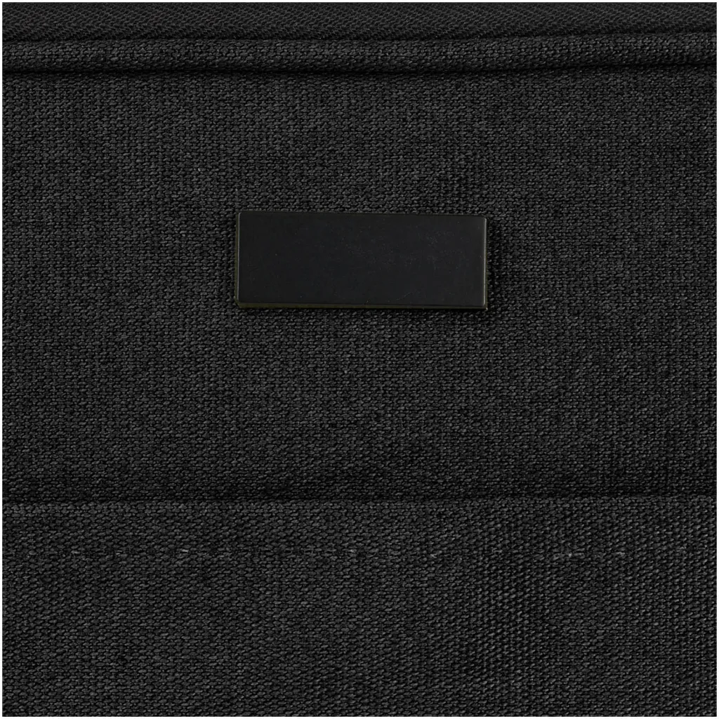 Composed with highly durable and sustainable materials, GRS recycled canvas and GRS RPET lining, the Joey 14" laptop sleeve features a protected laptop compartment, and an open front pocket with hook & loop closure. The decorative metal plate can make a logo shine through its subtle and matt finish.