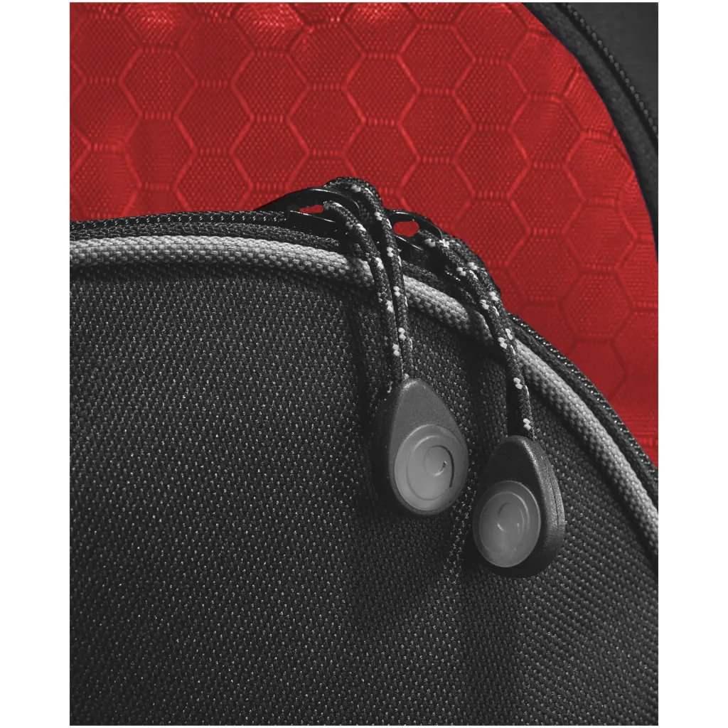 Zippered main compartment holds most 15" laptops and includes padded compartment for your iPad or tablet. Large front zippered pocket has organization and earbud access. Features two side pockets. Reinforced carry handle and adjustable padded shoulder straps. Accessories not included.
