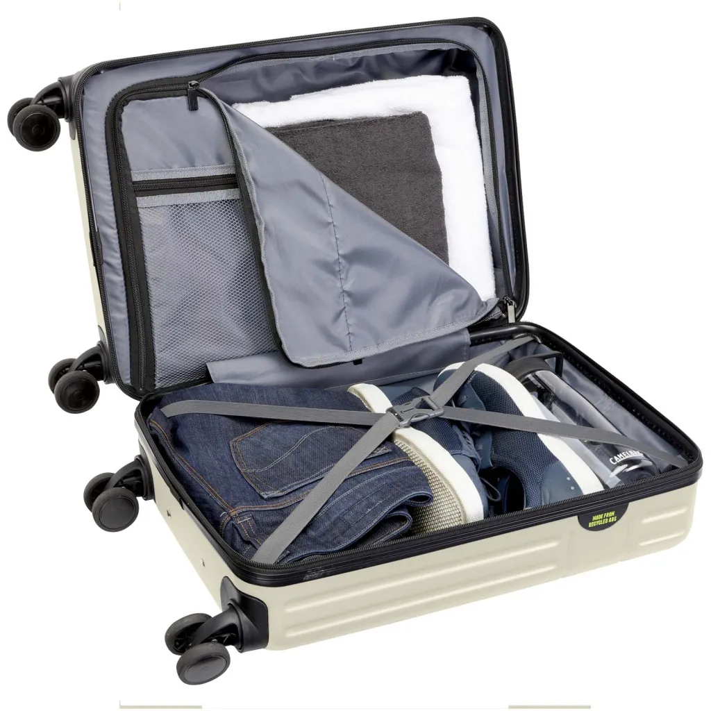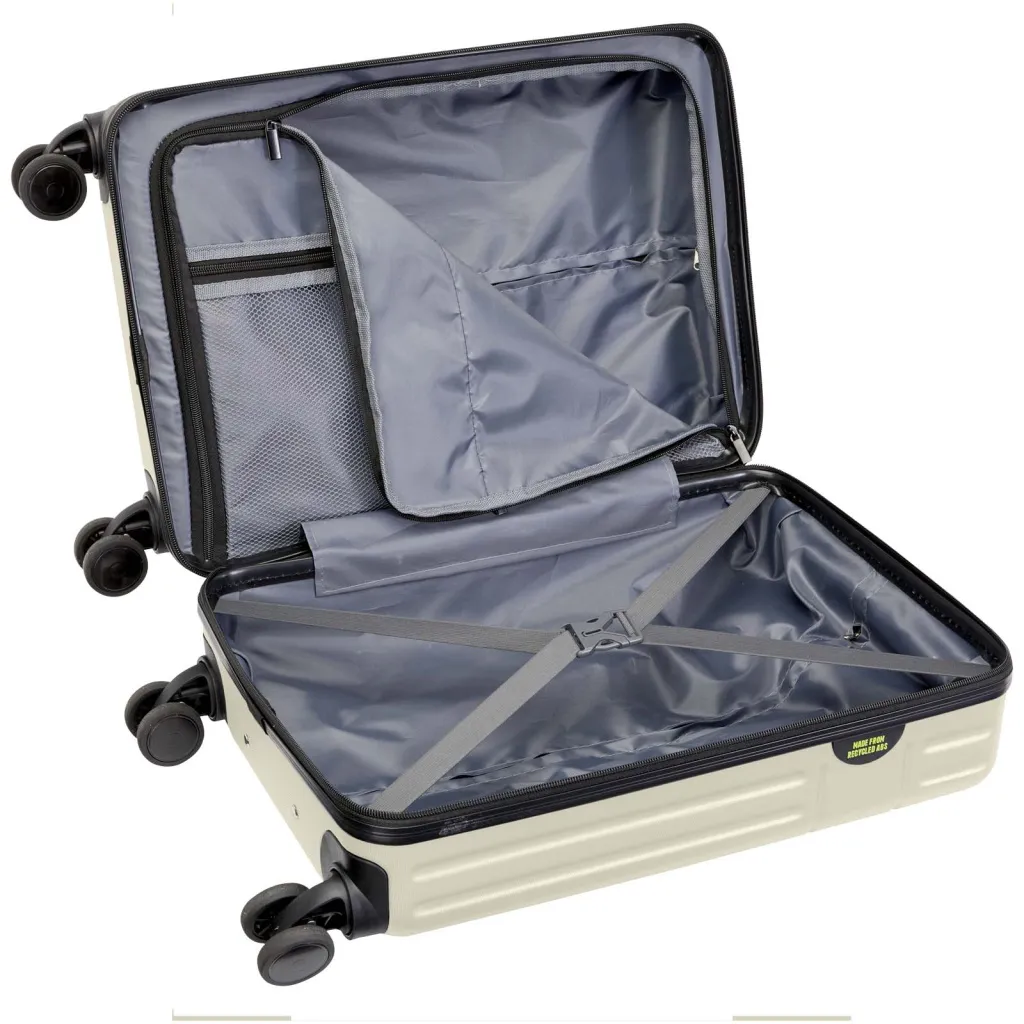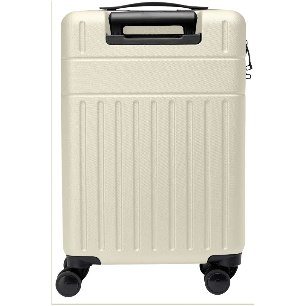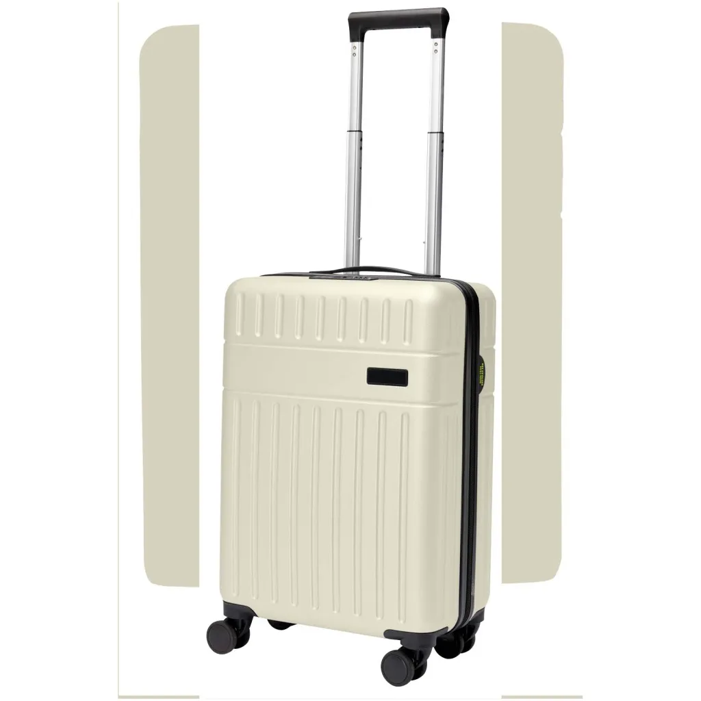 Constructed with impact-resistant recycled plastic and RPET lining, the 20” Rover cabin trolley stands for quality. It features a double-tube aluminium frame, 360 degree 4-wheel spinner, an integrated TSA combination lock, an easy grab handle for comfort, and interior divider organiser compartments. Can be brought as hand luggage on most mainstream airlines. This trolley is GRS certified, including the printing, making it a more responsible choice.