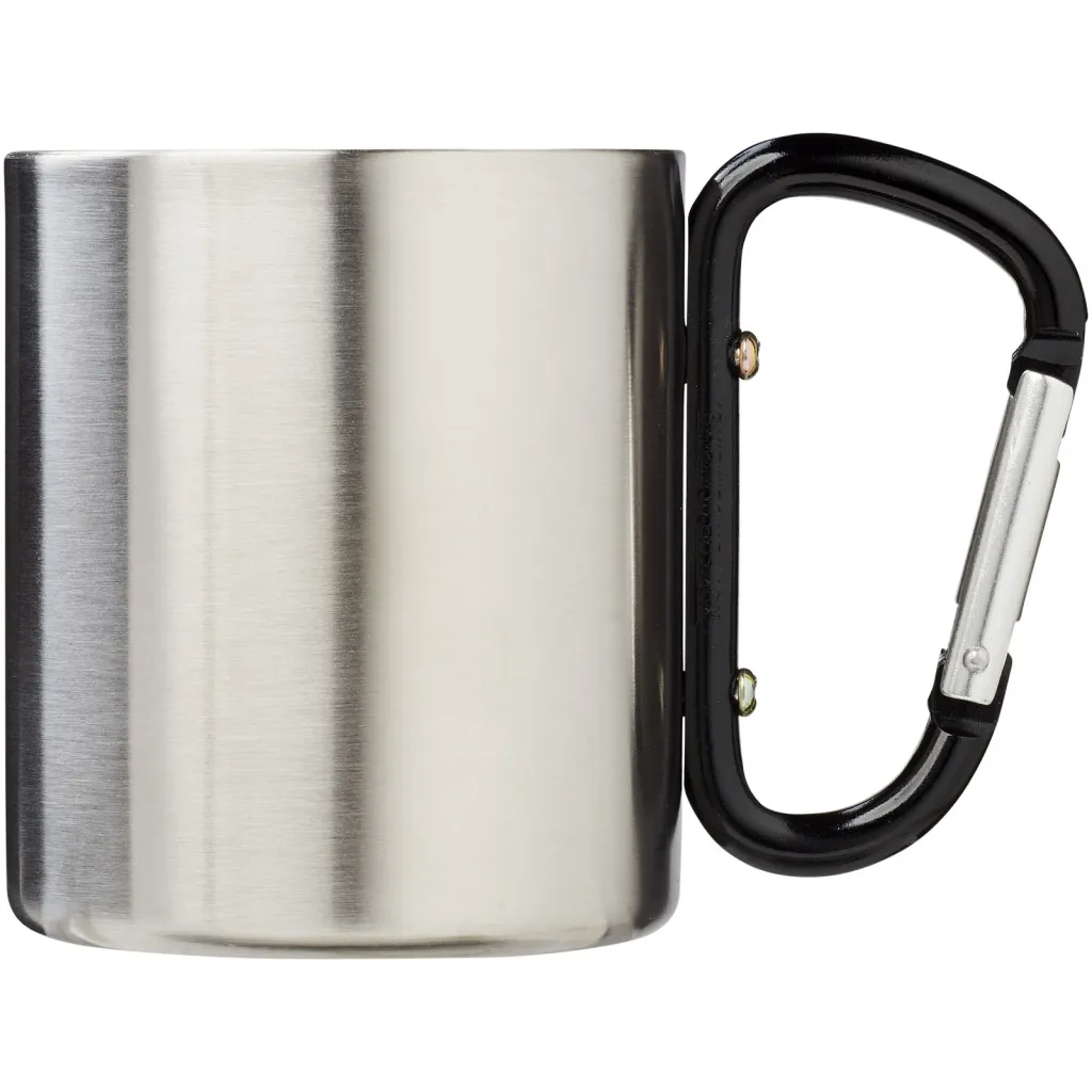 Wide handled 200 ml mug constructed from stainless steel with carabiner feature in the handle. Ideal for camping or outdoor pursuits.