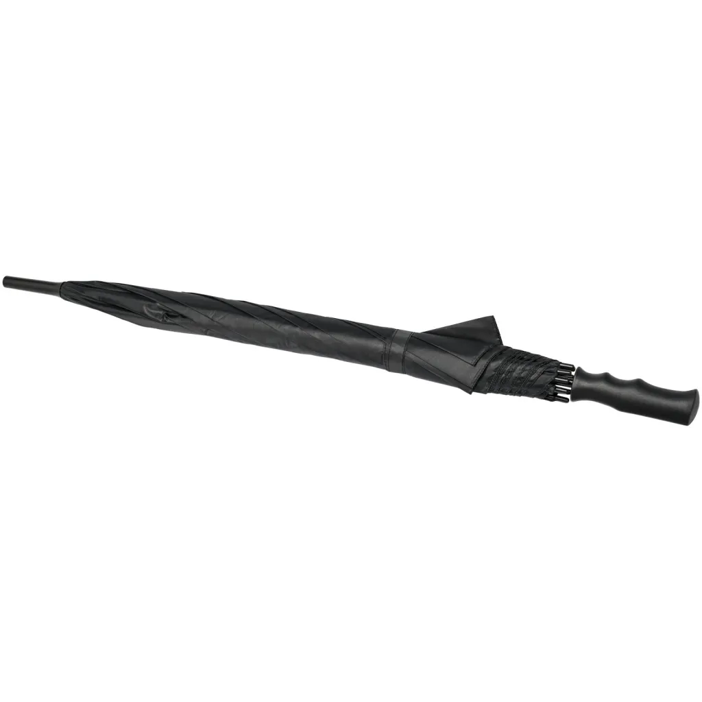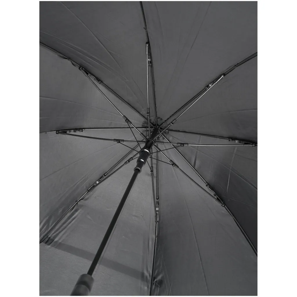 Automatically opening umbrella with a polyester canopy. It has a sturdy metal shaft, a patented high quality full fiberglass frame, offering maximum flexibility in windy conditions. Straight plastic handle, tips and top. Available in a wide variety of contemporary colours and has a large decoration area.