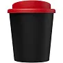 Compact, double-wall insulated tumbler with twist-on lid. Fits under most coffee makers. The tumbler is made of 100% recycled PP Plastic, and the lid is made of food grade PP Plastic. Since the lid is not made of recycled material it can be ordered in a wide range of different colours. Mug is fully recyclable. The shades of black or white may vary, and the white option has a texture colour effect, due to the nature of the recycled material. Volume capacity is 250 ml. Made in the UK. Packed in a home-compostable bag.