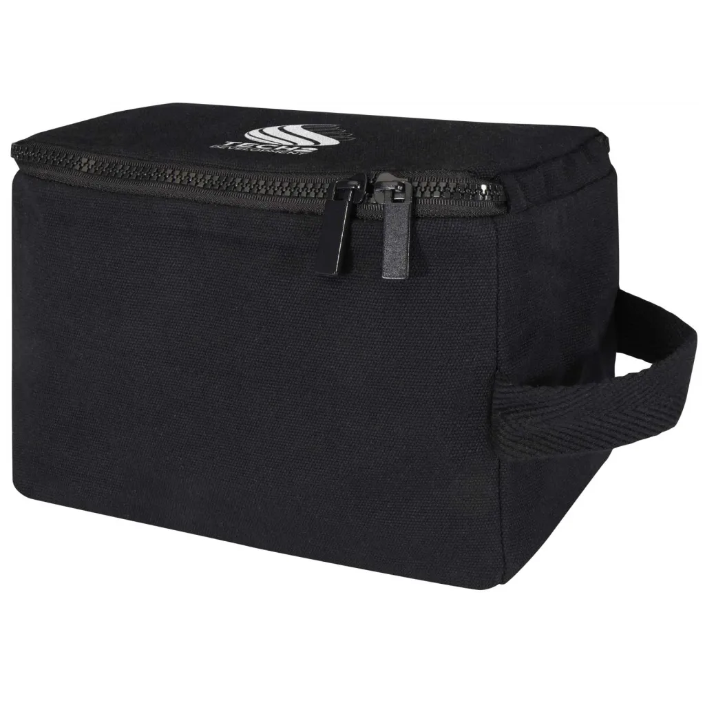 Toiletry organiser made of 500 g/m² recycled cotton and recycled polyester, featuring a spacious main compartment with a secure zipper closure and multiple interior slip pockets, making it ideal for storing toiletry essentials. Its versatile design is also well-suited for organising small items like socks or chargers, keeping luggage neatly arranged. The bag incorporates Cyclo® recycled fibres where they use pre-sorted waste that determines the colour of the yarn. These fibres do not only reduce the demand for virgin resources but also exhibit a commitment to a circular life, embodying the essence of reducing waste and promoting a closed-loop system. Each bag also comes with an Aware™ tracer. This innovative feature allows users to trace the origins and journey of their item through a QR code, enhancing transparency in the supply chain and fostering a stronger connection between the product and its production process.