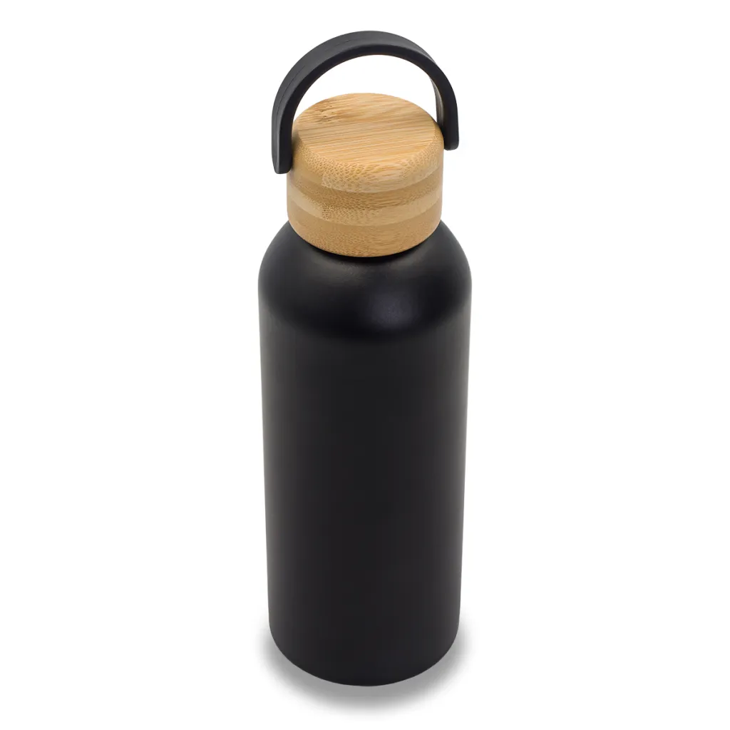 Leak-proof vacuum bottle made from stainless steel. Vacuum between two walls gives the flask perfect thermal insulation properties. The inner wall is made from 18/8 upgraded steel. The lid is made of bamboo wood, equipped with a handle. The bottle is suitable for cold and hot liquids. It keeps the temperature above 40 ° C up to 15 hours.