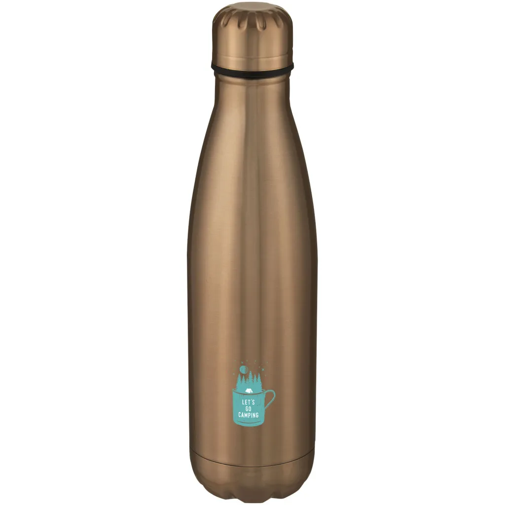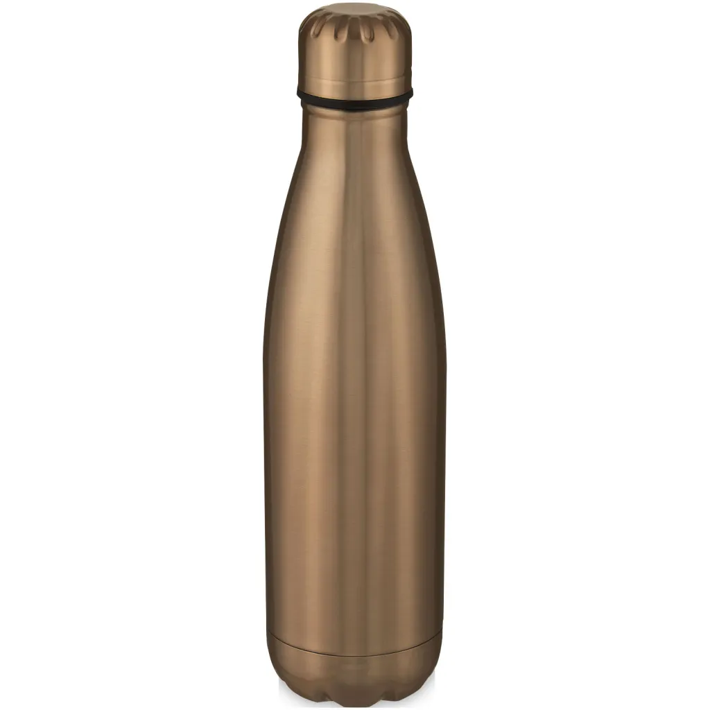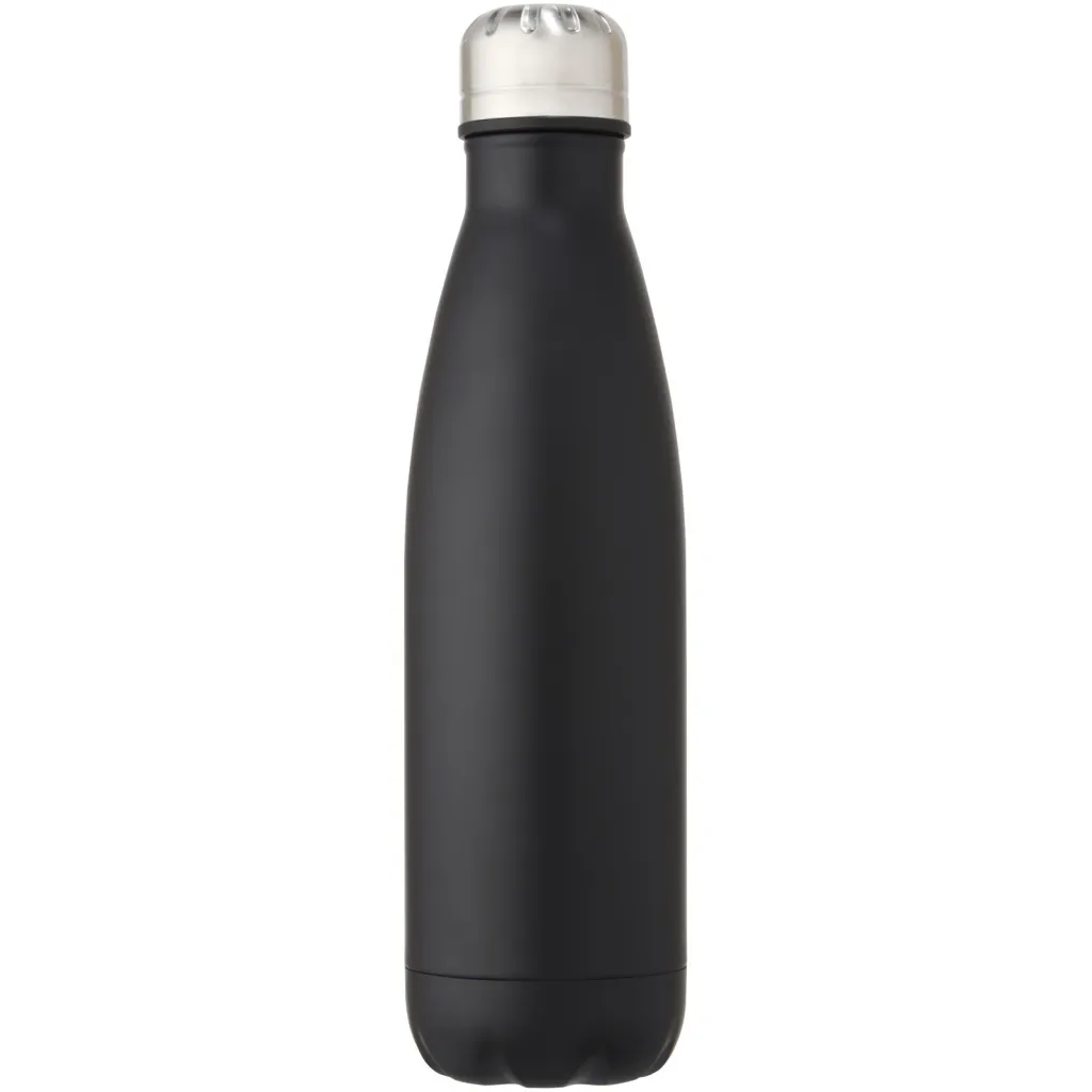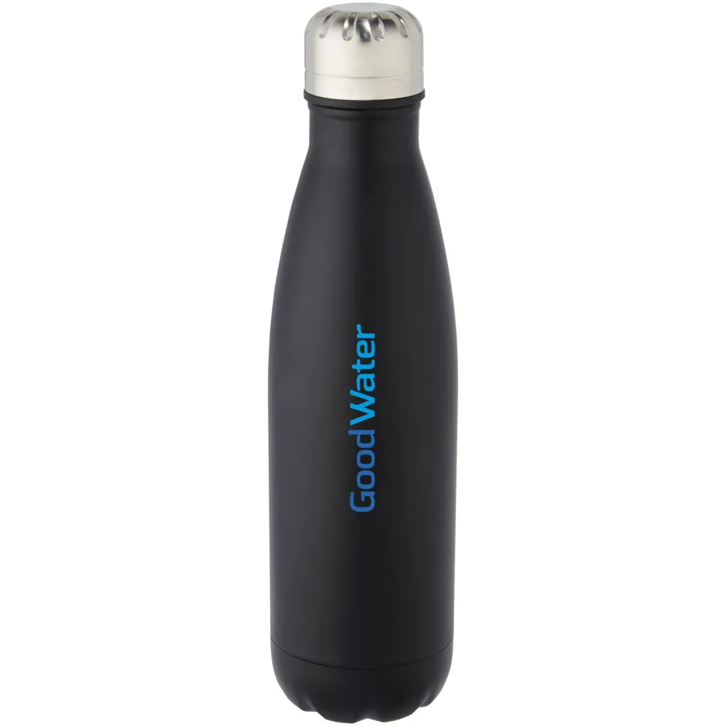 Vacuum insulated stainless steel bottle with an iconic design. The insulated 18/8 stainless steel keeps drinks hot or cold for several hours. Tested and approved under German Food Safe Legislation (LFGB), and tested for phthalates content according to REACH regulations. Featuring a base that fits in most cup holders, this sleek looking water bottle is a perfect promotional item. Volume capacity is 500 ml. Presented in a recycled cardboard gift box.