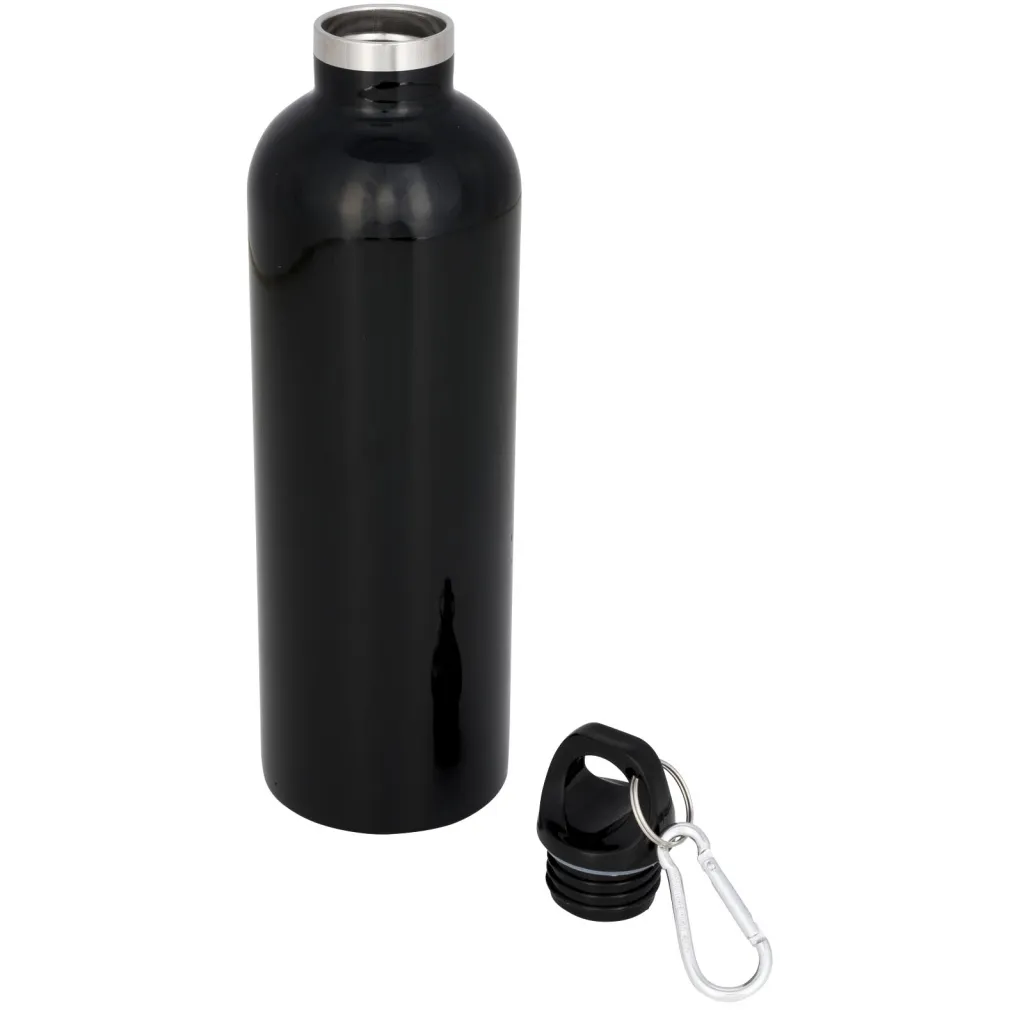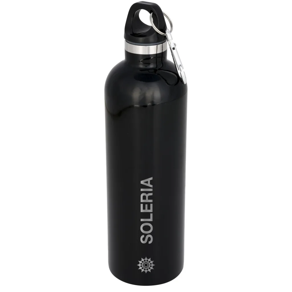 The Atlantic vacuum insulated bottle features double-wall construction, vacuum insulation and a twist-on lid. It keeps drinks hot for 5 hours and cold for 15 hours. Carabiner is not suitable for climbing. Volume capacity is 530ml.