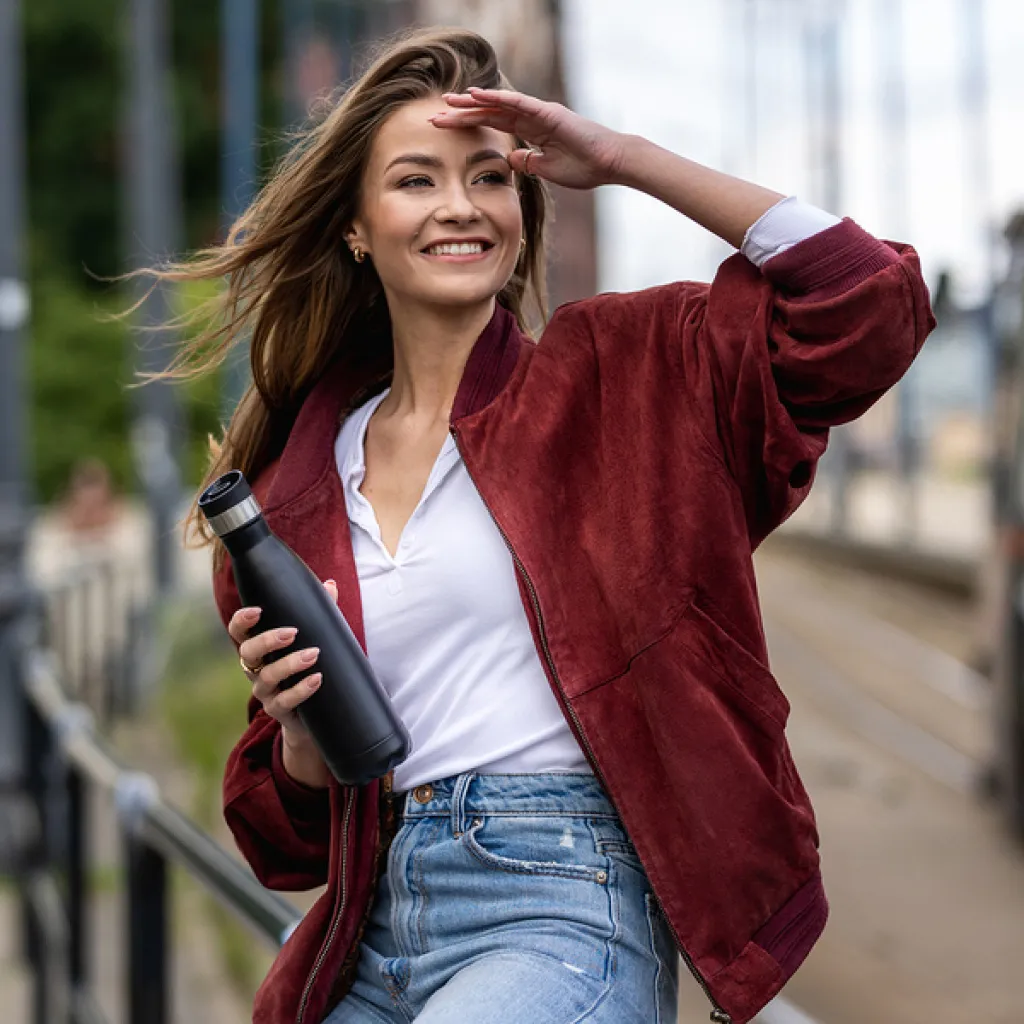 Leak-proof vacuum bottle with a capacity of 550 ml. It has a special mouthpiece with a 360-degree opening that allows you to drink from any side. Two walls made of stainless steel, inside 18/8 steel of increased quality. The bottle is suitable for cold and hot liquids. Removable cap allows for thorough cleaning. Keeps warm up to 15 hours.