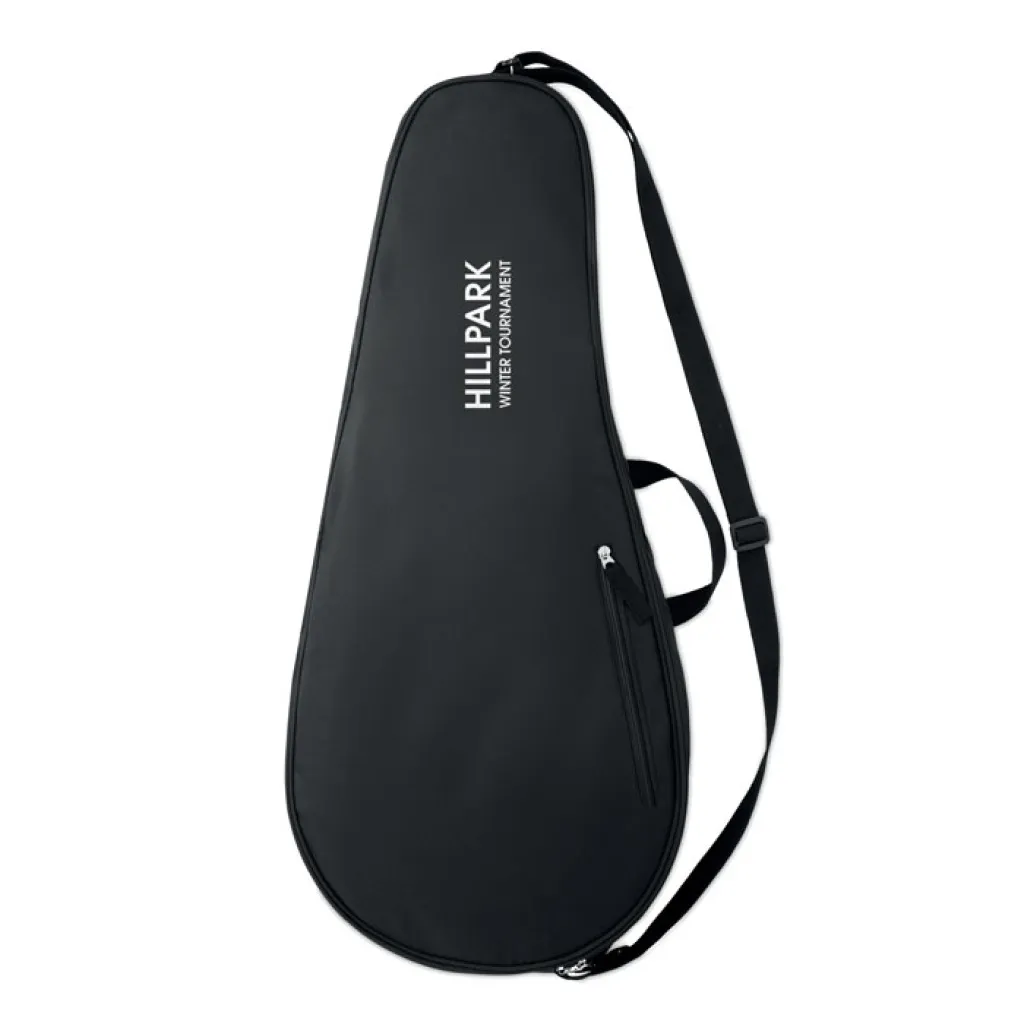 Single padel tennis carry bag in 600D padded RPET. Includes adjustable shoulder strap. Additional zippered front pocket.