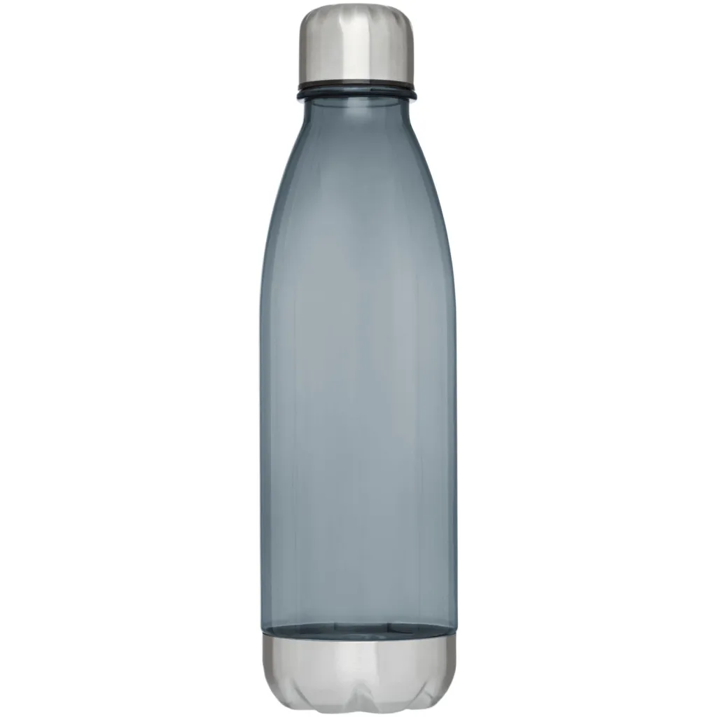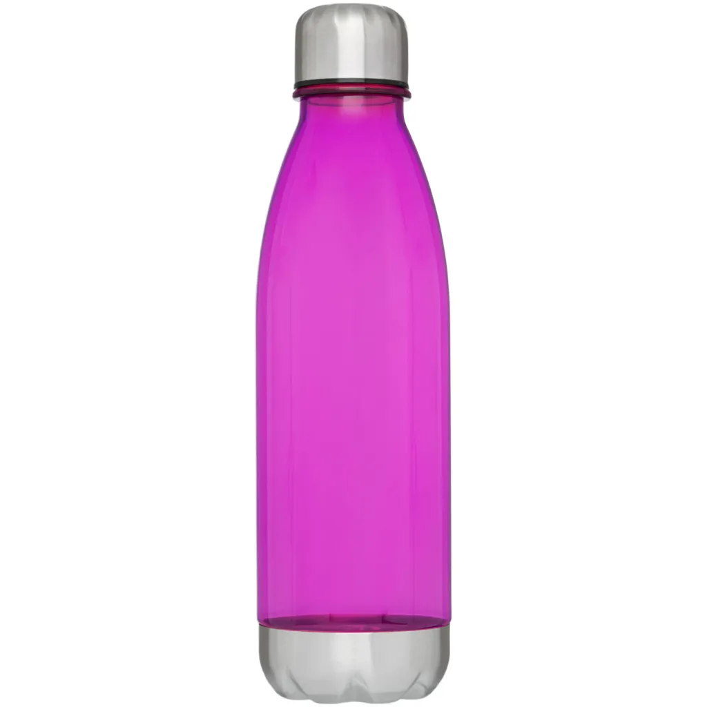 Single-walled sport bottle in durable Tritan material with screw-on lid. Shatter, stain, and odour resistant. Features a stainless steel lid and bottom. BPA free. Volume capacity is 685 ml.
