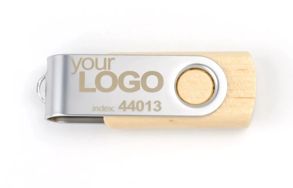 Compact, made of metal and maple wood, portable USB memory stick, capacity 8 GB. Marking possible on both sides of metal casing. USB memory stick comes with a 5 years limited warranty. Suggested packaging: BC44501, BC44505, BC44508.