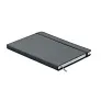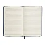 A5 notebook with hard PU cover and 96 lined pages closed with an elastic band.
