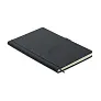A5 notebook with PU hard cover with front phone pocket. Case bound. 160 recycled paper lined pages (80 sheets). Matching ribbon bookmark.