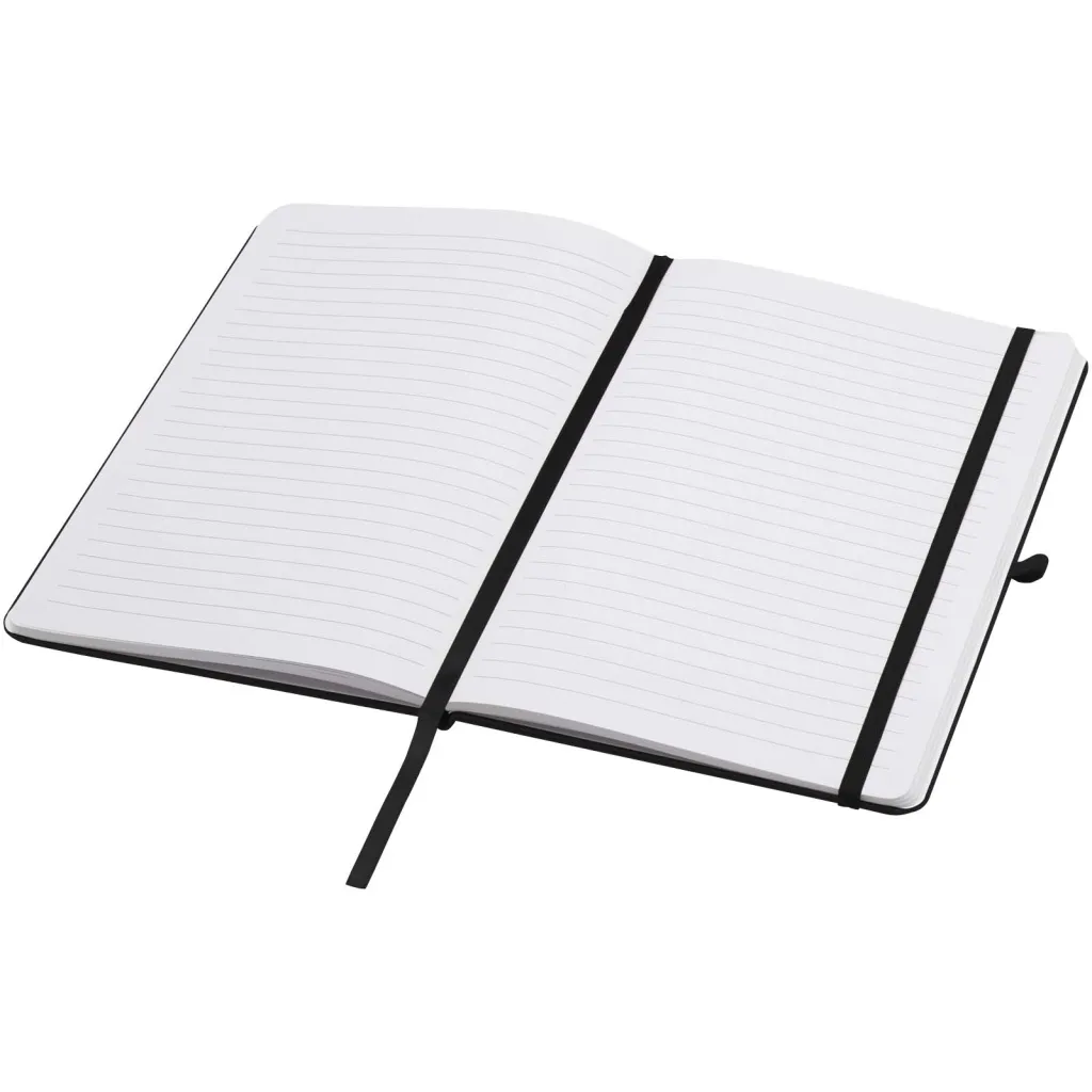The Teak A5 recycled cardboard hard cover notebook with rounded corners is not only an office essential but also a great opportunity to promote your brand. The notebook has 96 lined sheets of 70 g/m2 paper and a soft-feel cover. Comes with a pen loop, elastic closure, and ribbon marker.