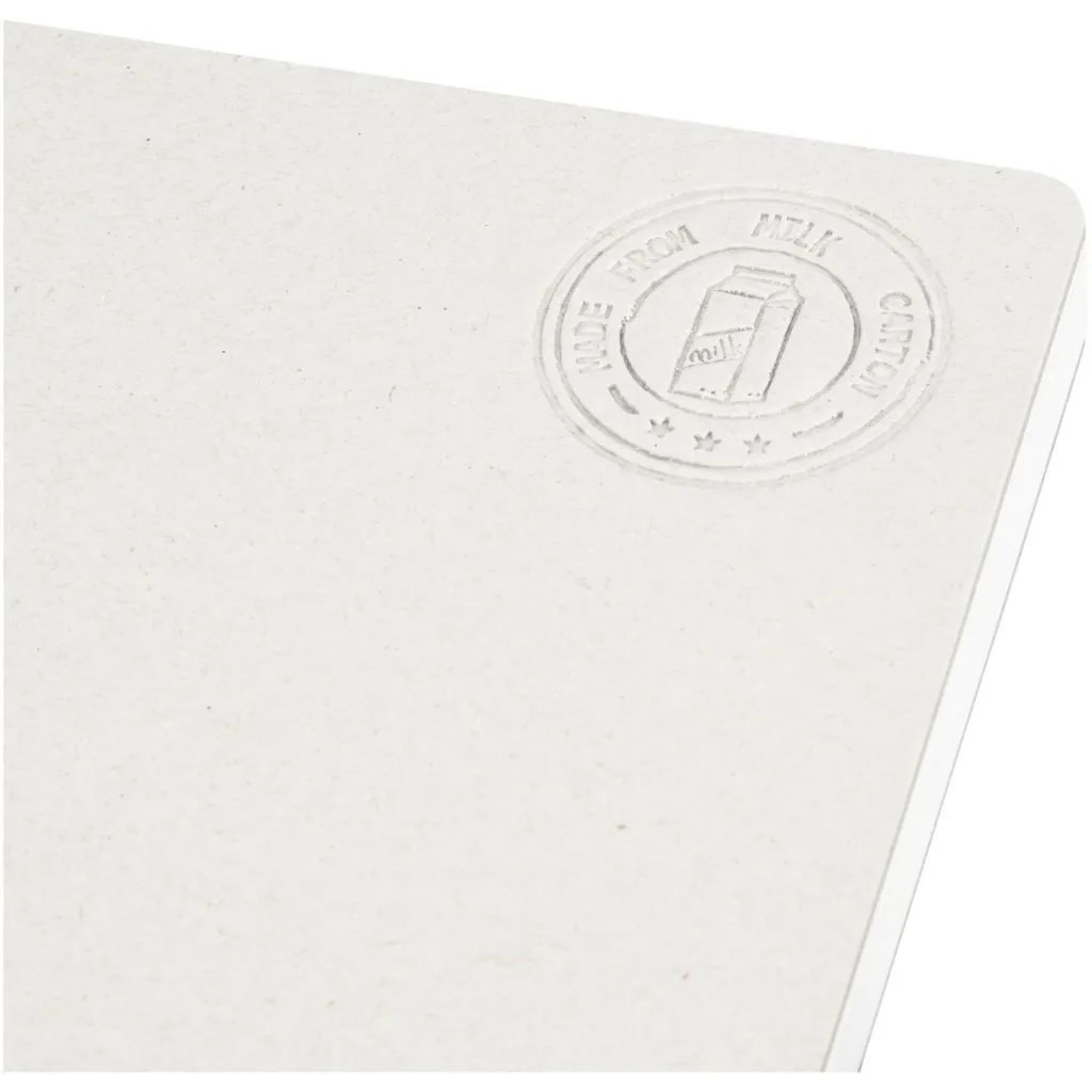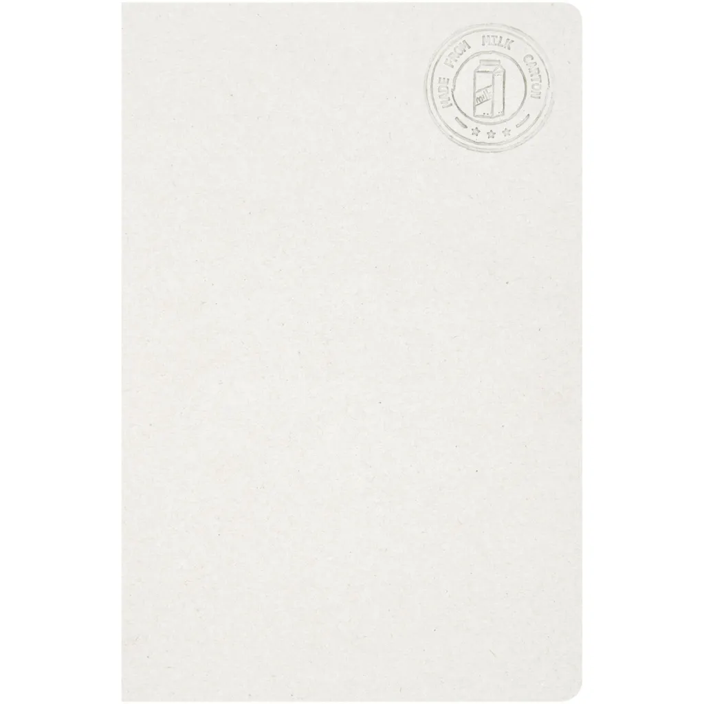 A5 size reference spineless notebook with 80 80 g/m² lined sheets, made from recycled milk cartons (up to 70%). Used milk cartons are collected, sorted, processed and turned into paper, truly turning waste into something useful.