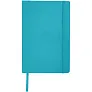 Soft touch cover notebook (A5 size reference) with built-in elastic closure, ribbon page marker, document pocket on interior back cover and 80 sheets (80gsm) of lined paper. .