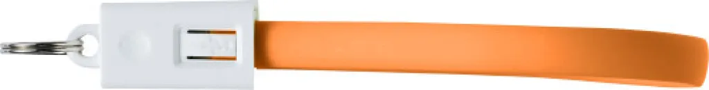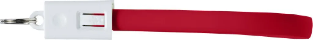 Charging cable with ABS key holder. The cable has a USB and Lightning connector. Cable length: 22 cm.