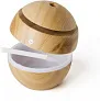 ABS humidifier with wooden look. With color-changing led lights. For rooms up to 25m2. Delivered without liquid, add your own water or fragrance. Two sponges included for better performance, one installed and one refill. Individually packaged in a brown cardboard box.