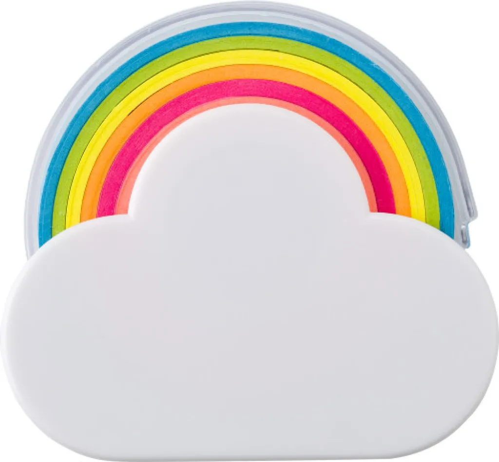 Plastic memo tape dispenser. The colors of the memo tape are blue, green, yellow, orange and pink (2.5 m each).