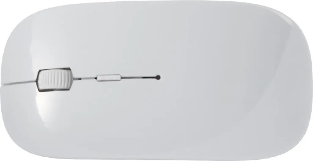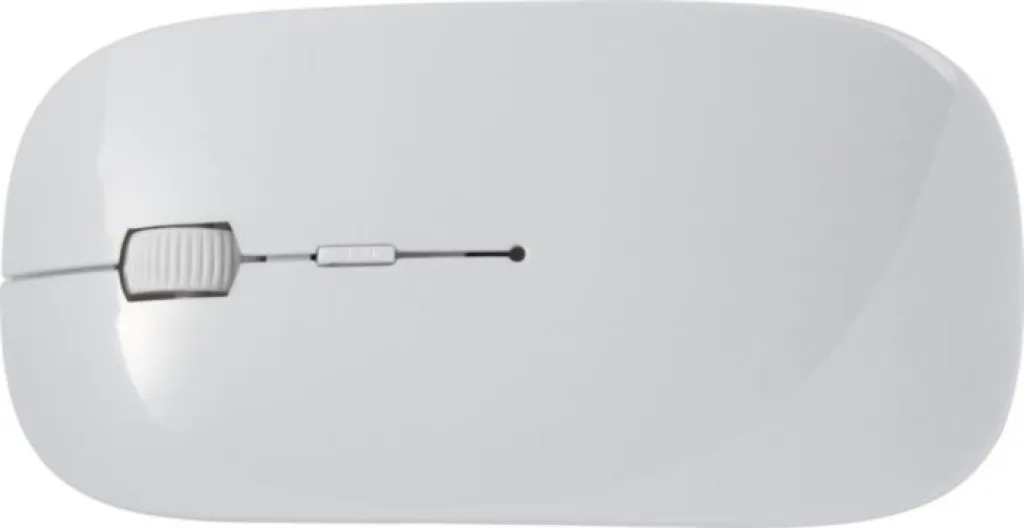 ABS wireless optical computer mouse, 2,4Ghz. An energy saving mouse with hidden Nano receiver and scroll wheel in the middle. Batteries included.