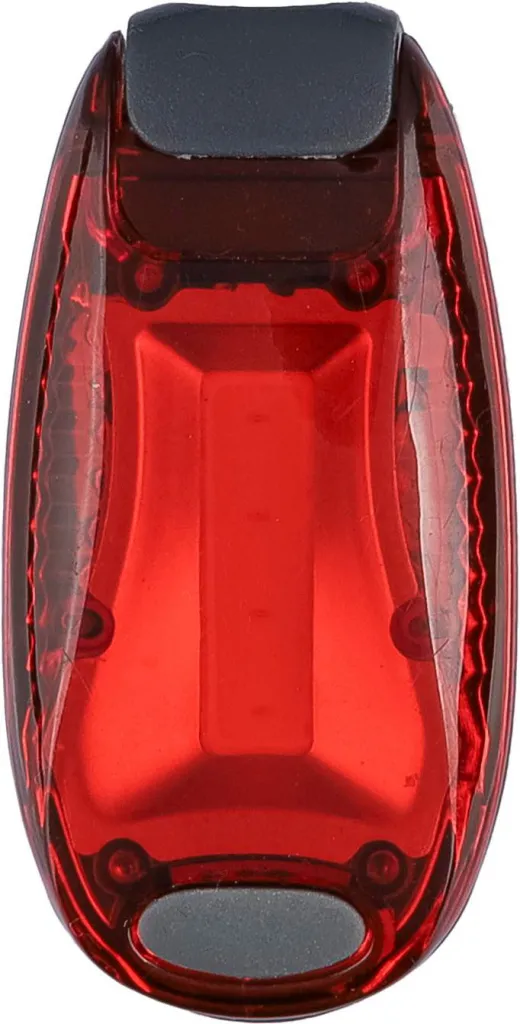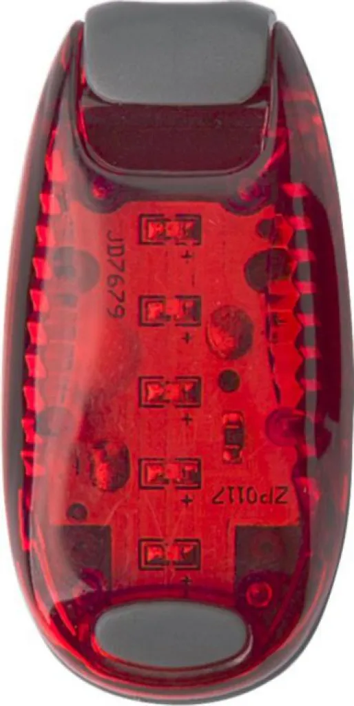 ABS safety light with two settings: constant and blinking. Comes with a clip to attach the light.