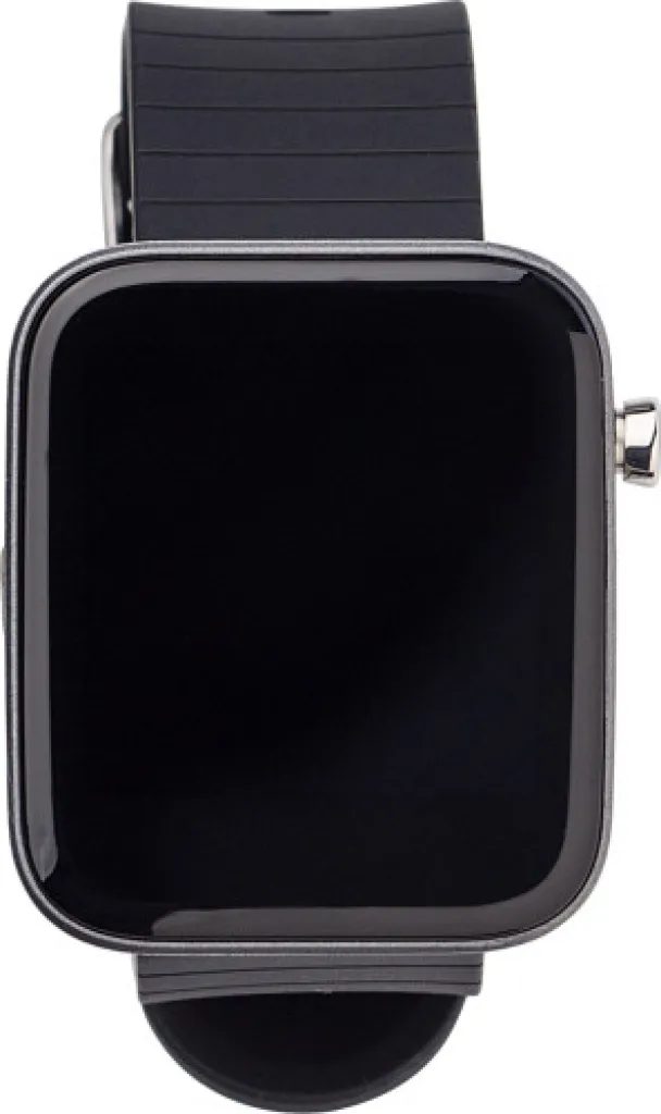 ABS and PC smart watch with TPU wristband and wireless technology. Watch has a 1,54” IPS display and is IP67 waterproof. Functions: time, steps, distance, calories, heartrate, bloodpressure, notifications, phone finder, and more. Including USB cable.