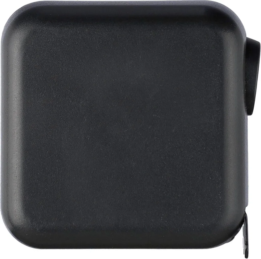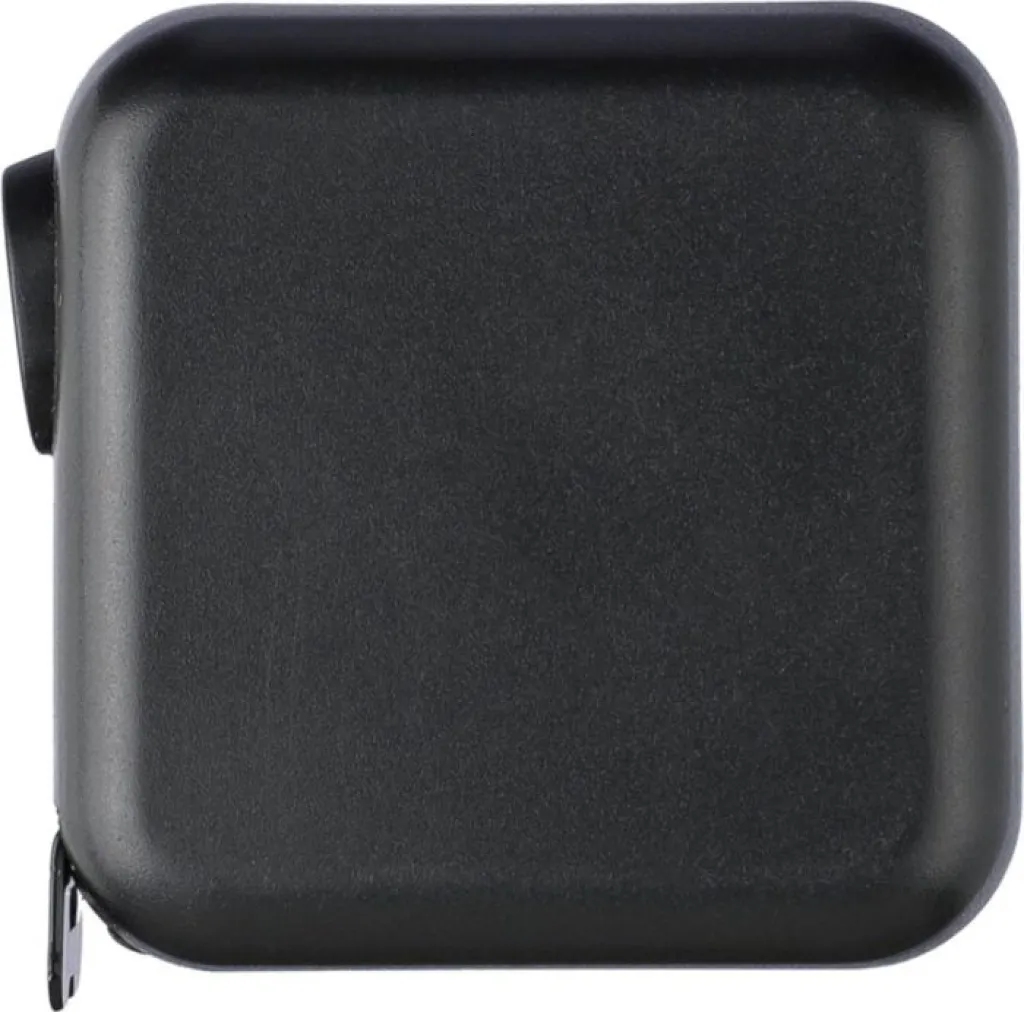 ABS tape measure. 3 meters in length. Tape made from metal (16 mm) printed with both centimeters and inches. Ultrasonically assembled (screwless). Includes push button with lock. Individually packaged in a brown cardboard box.