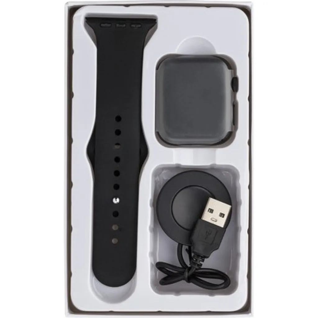 Activity tracker, wireless multifunctional watch, touchscreen, side button, USB rechargeable, functions: heart rate monitor, blood pressure monitor, blood oxygen monitor, pedometer, sleep monitor.