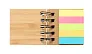 Bamboo covered, spiral notepad with 75 large (in 3 different colours) and 125 small adhesive notes (in 5 different colours).