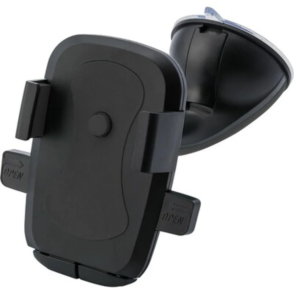 Adjustable mobile phone car holder with big suction cup for fastening, brackets can expand to 8,1 cm