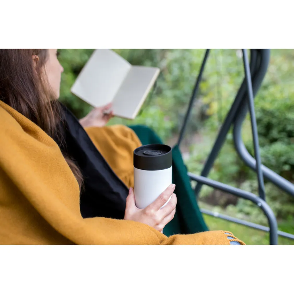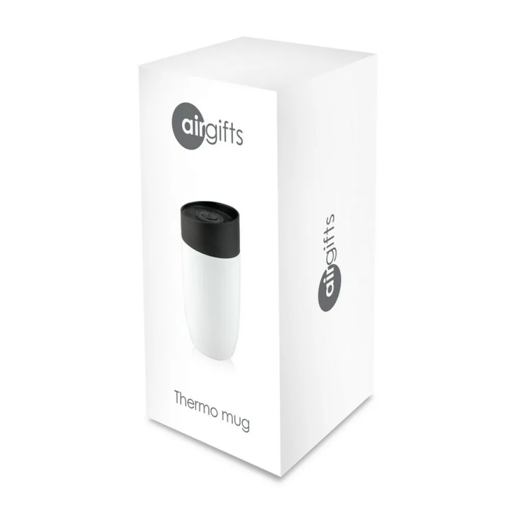 Air Gifts thermo mug 310 ml, copper vacuum insulation, double vacuum walled, stainless steel inside and outside, leakproof plastic lid, easy to use push open/close system, suitable for single hand operation, mat finish, thermal insulation scale: 2