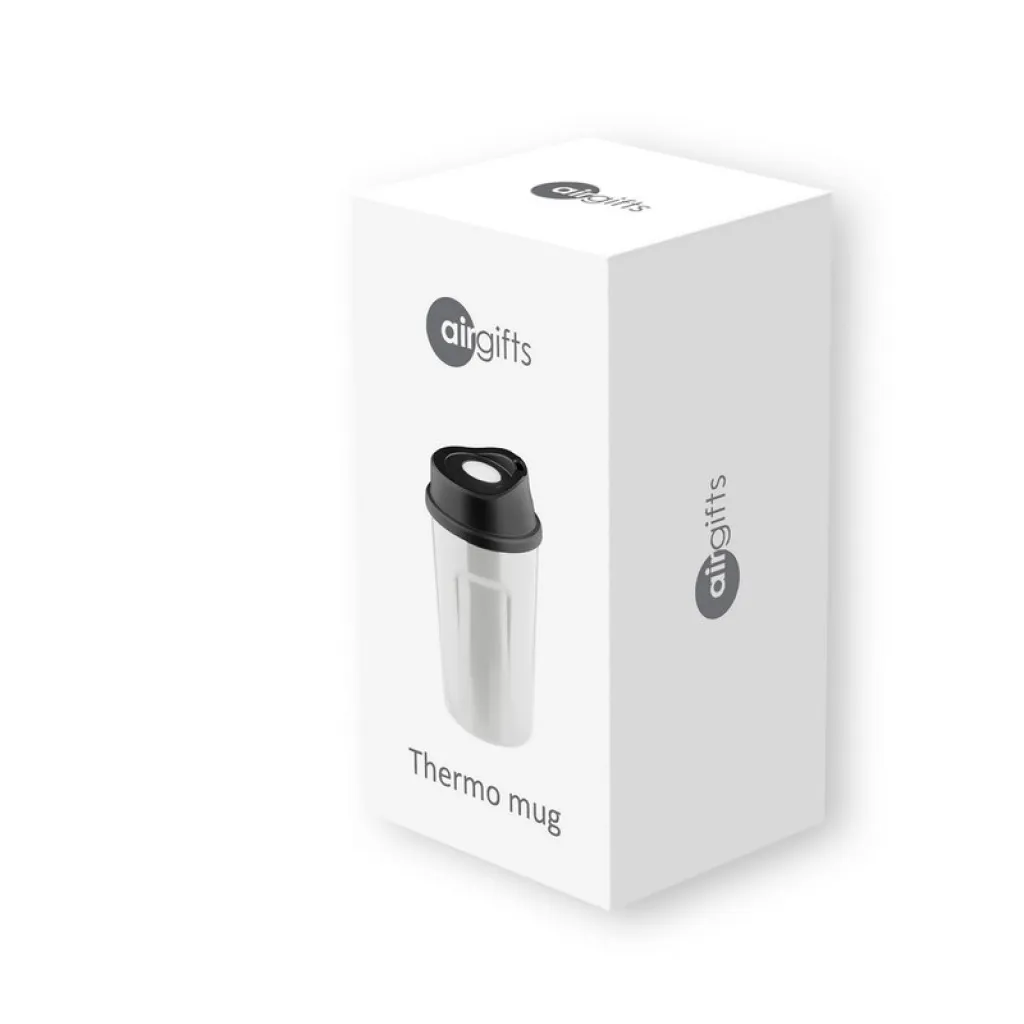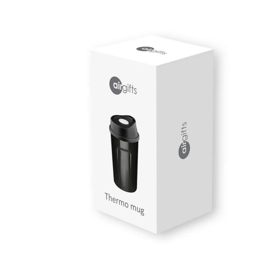 Air Gifts thermo mug 350 ml, copper vacuum insulation, double vacuum walled, stainless steel inside and outside, leakproof plastic lid, easy to use push open/close system, suitable for single hand operation, shiny finish, thermal insulation scale: 3 +leakproof