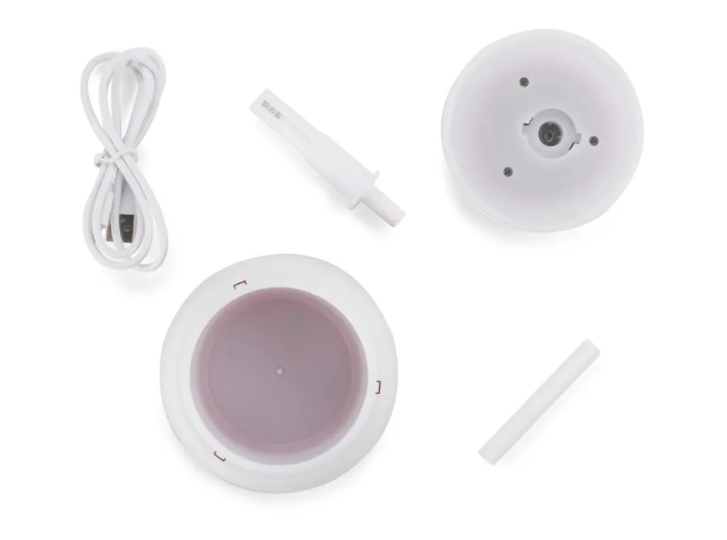 "Very easy and convenient to use. In addition to the basic function of generating fog, it has a backlight in seven colors.. A micro USB power cable is included. AERO is not suitable for use with aromatic oils. Technical specifications: - Capacity of the container 160 ml"
