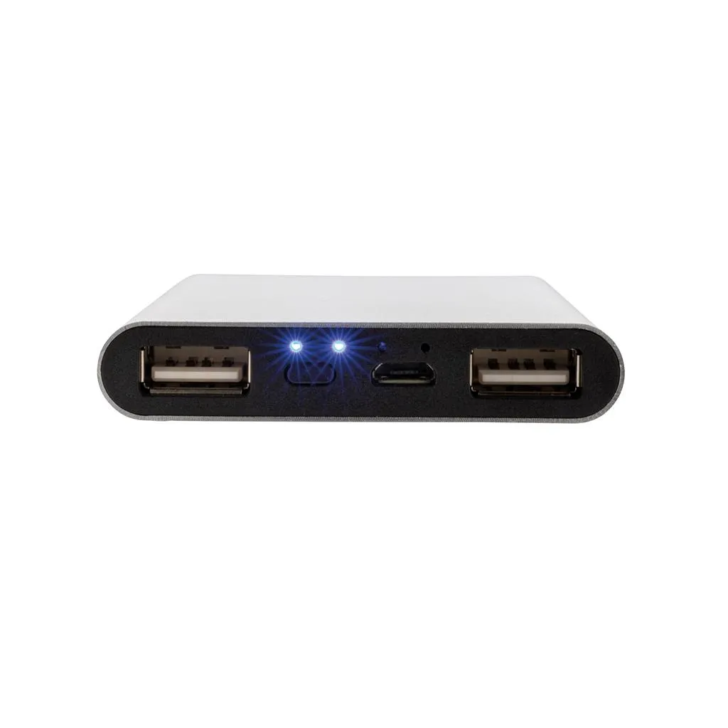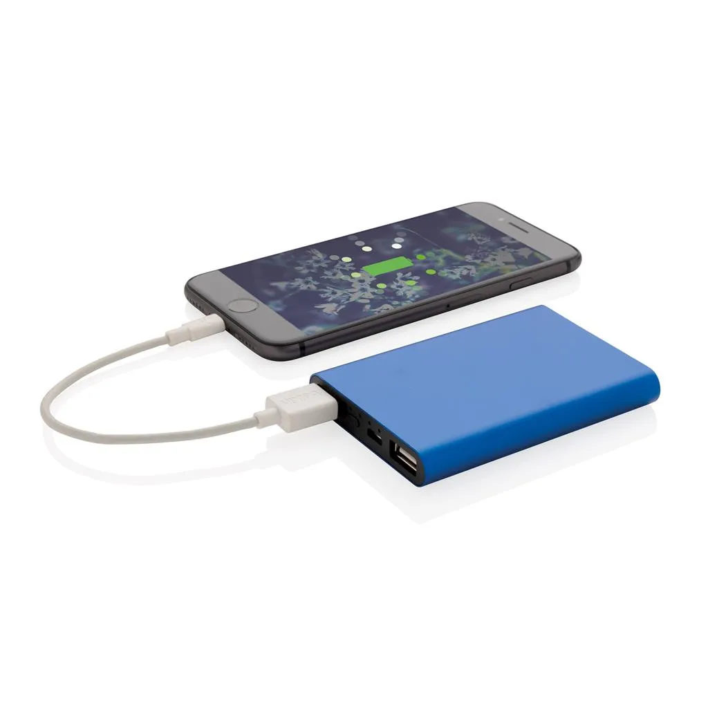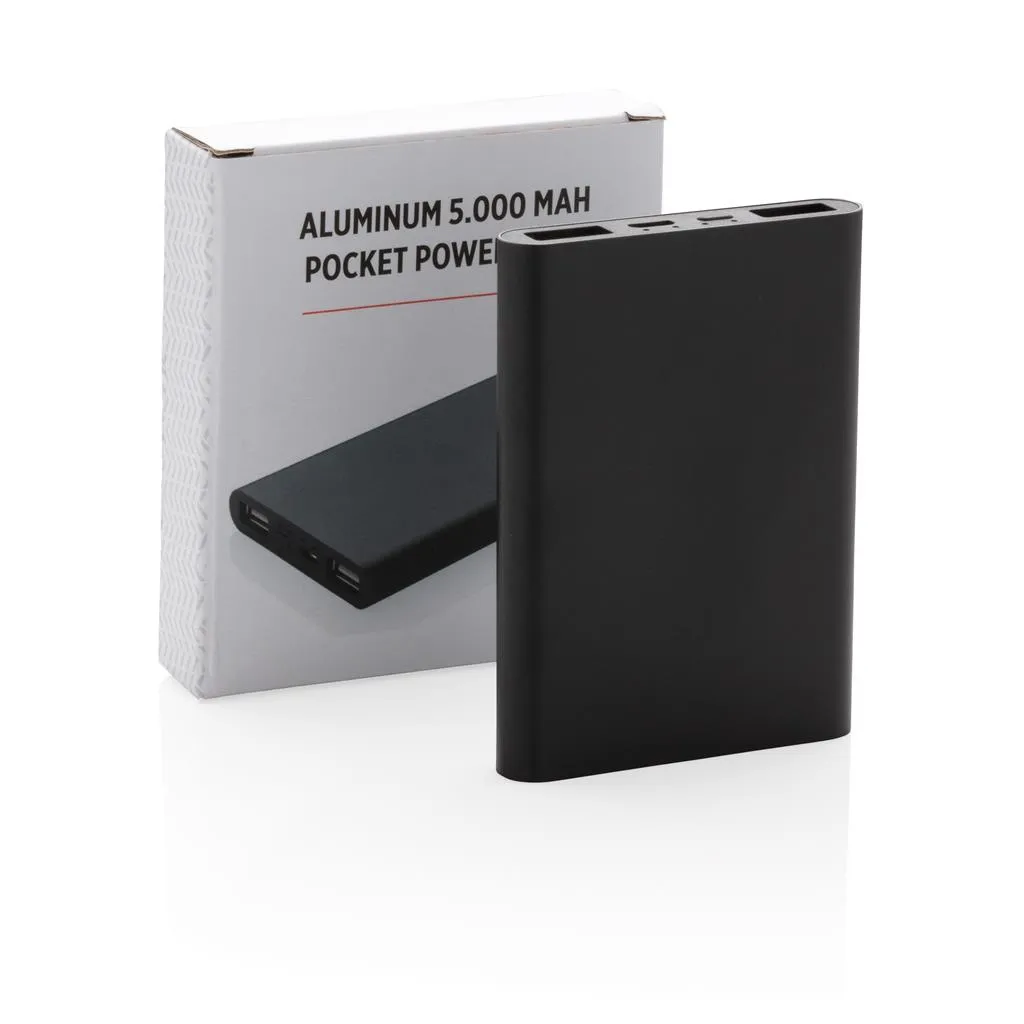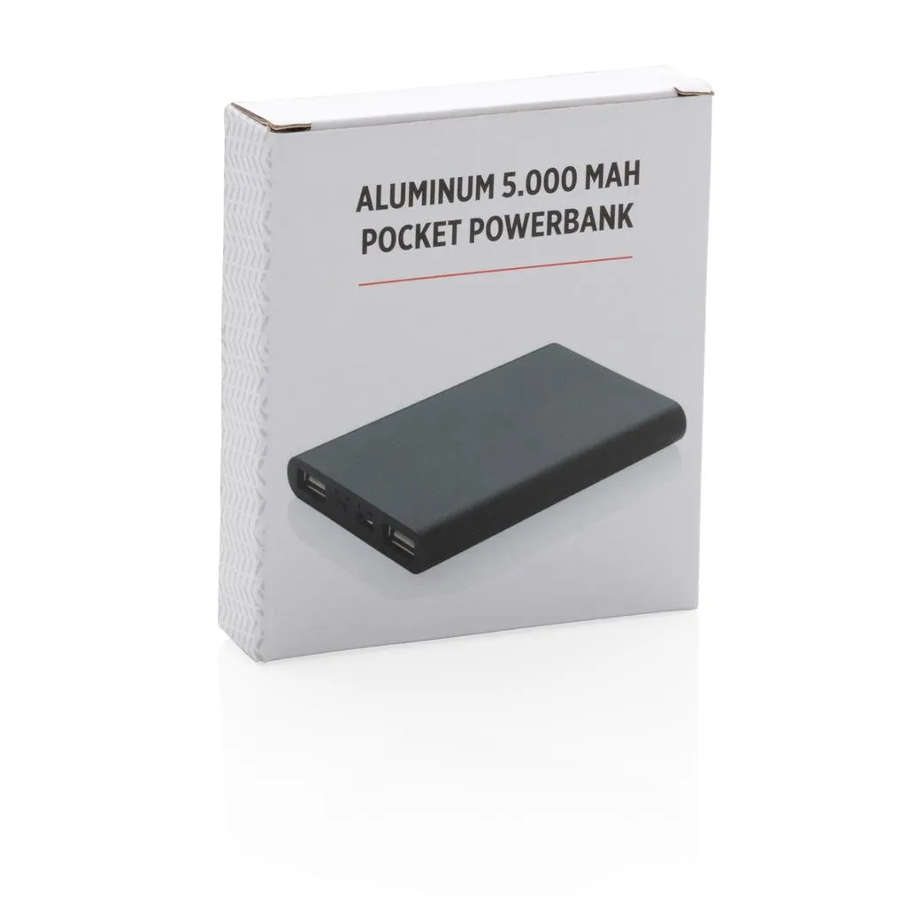 Ultra-flat 5.000 mAh powerbank made out of aluminium that fits into your pocket so perfectly that you can take it anywhere you go. When fully charged it will provide you with enough energy to re-charge your mobile phone up to three times. The powerbank contains a long lasting grade A 5.000 mAh high-density lithium polymer battery. The power indicators will indicate the remaining energy level so you always know when to re-charge. Input: 5V/1.5A. Output 5V/2.1A.