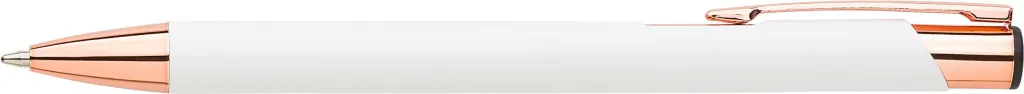 Aluminium ballpen with matte finish and rose gold details. Blue ink. When engraved the design will be silver colored.