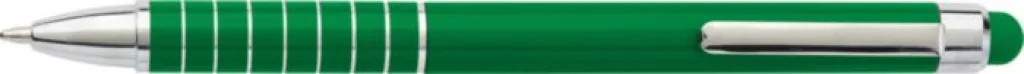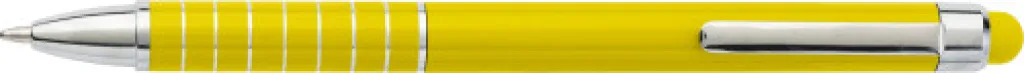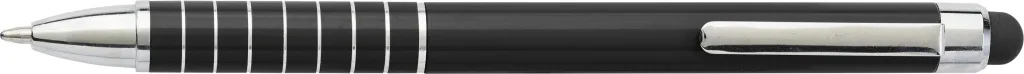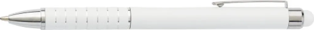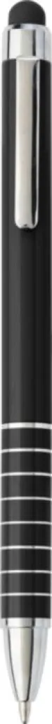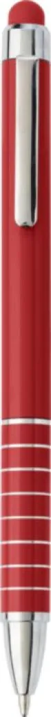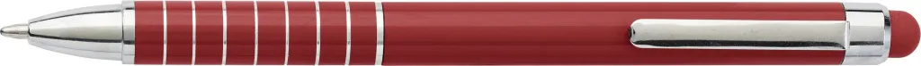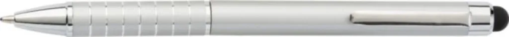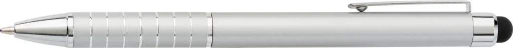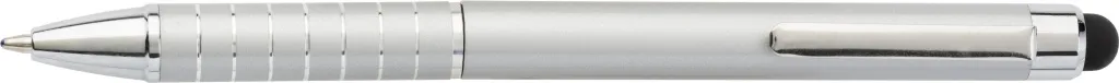 Aluminium lacquered ballpen with a rubber tip suitable for capacitive screens and twist action mechanism. Blue ink.