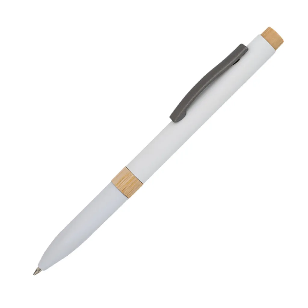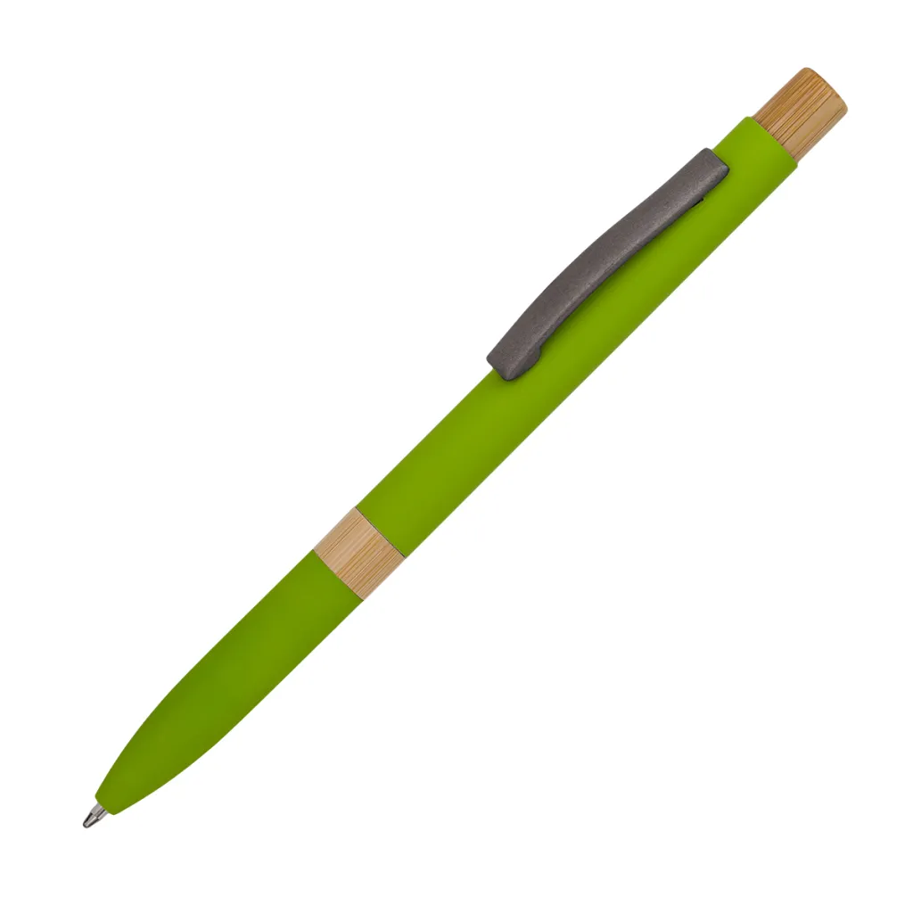 Pen with a satin finish, decorated with bamboo elements. Blue refill.