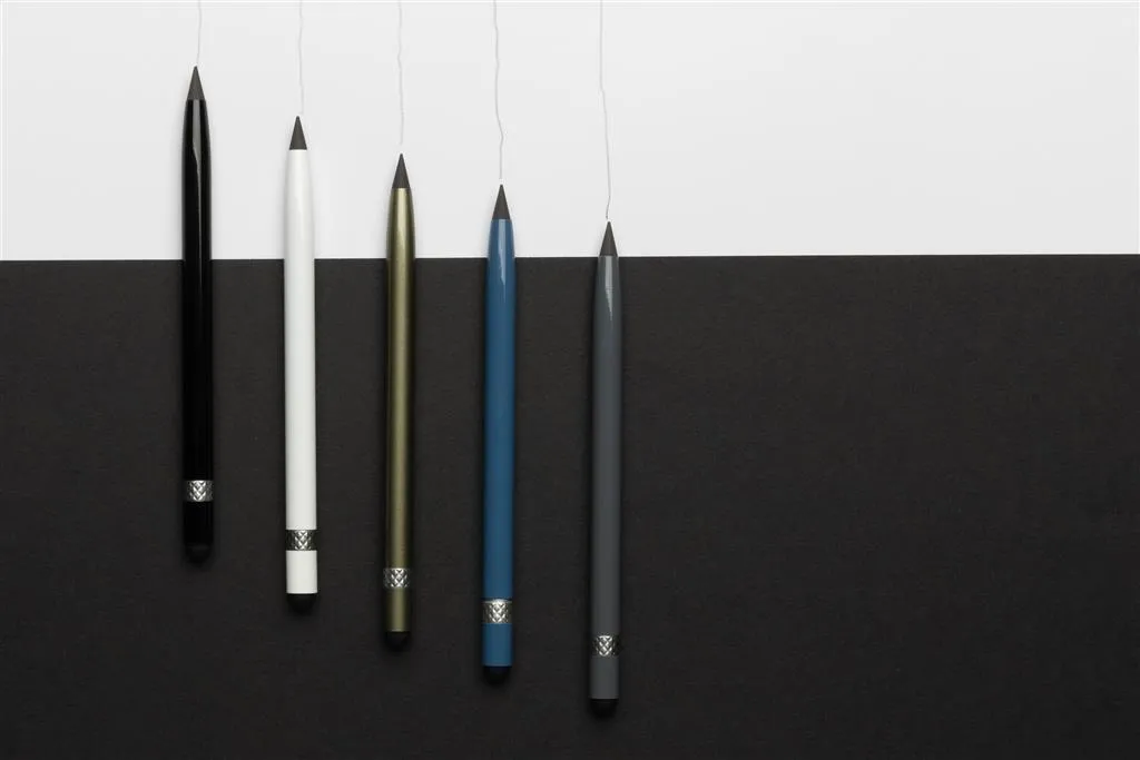 This inkless pen with eraser replaces your traditional wooden pencil. It has a writing length of up to around 20.000 metres using a graphite tip to produce a graphite line. It features a clean and modern look with the aluminum and on the top you will find an eraser.