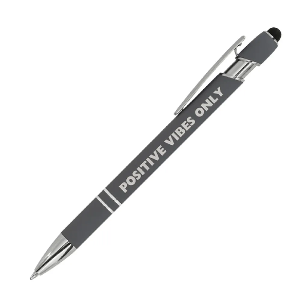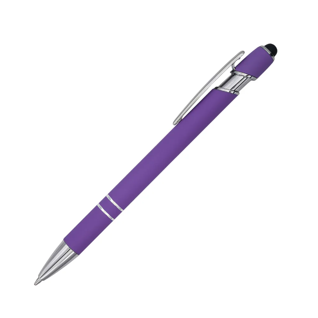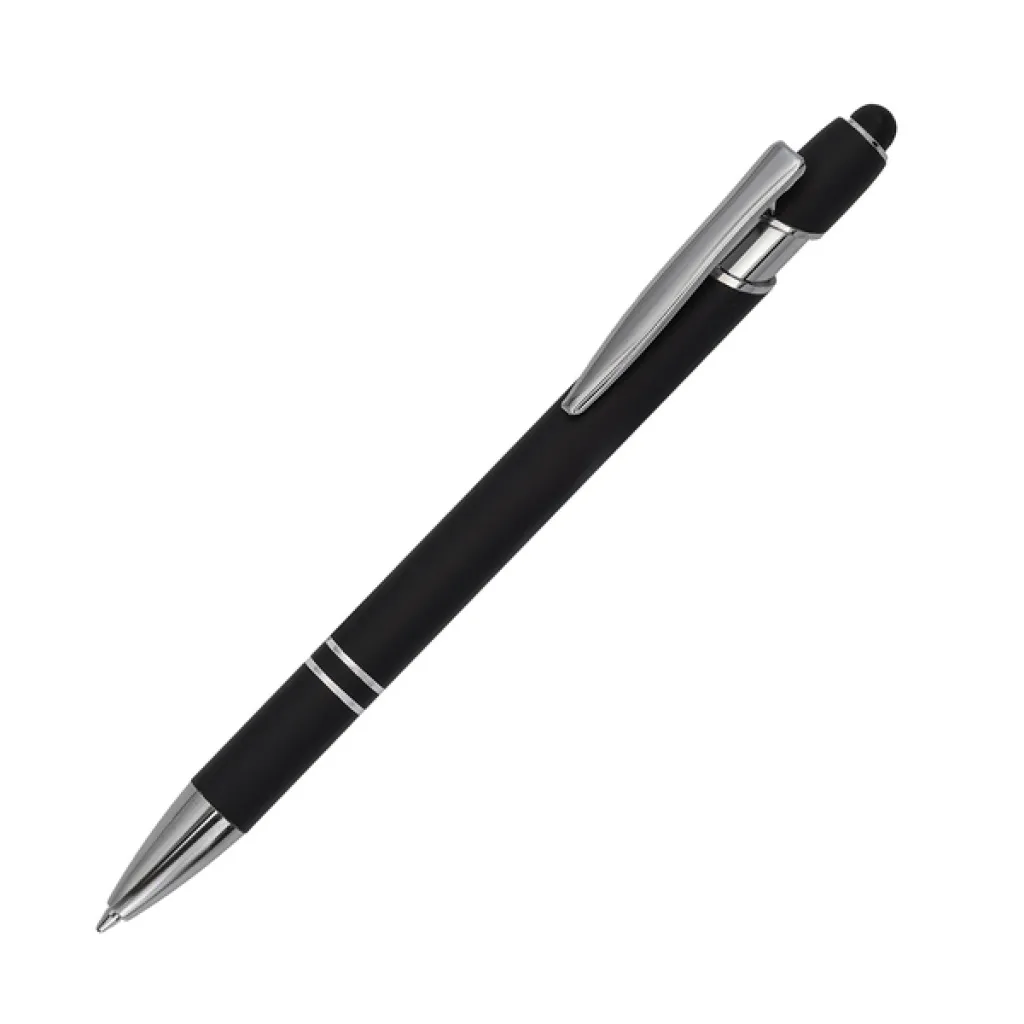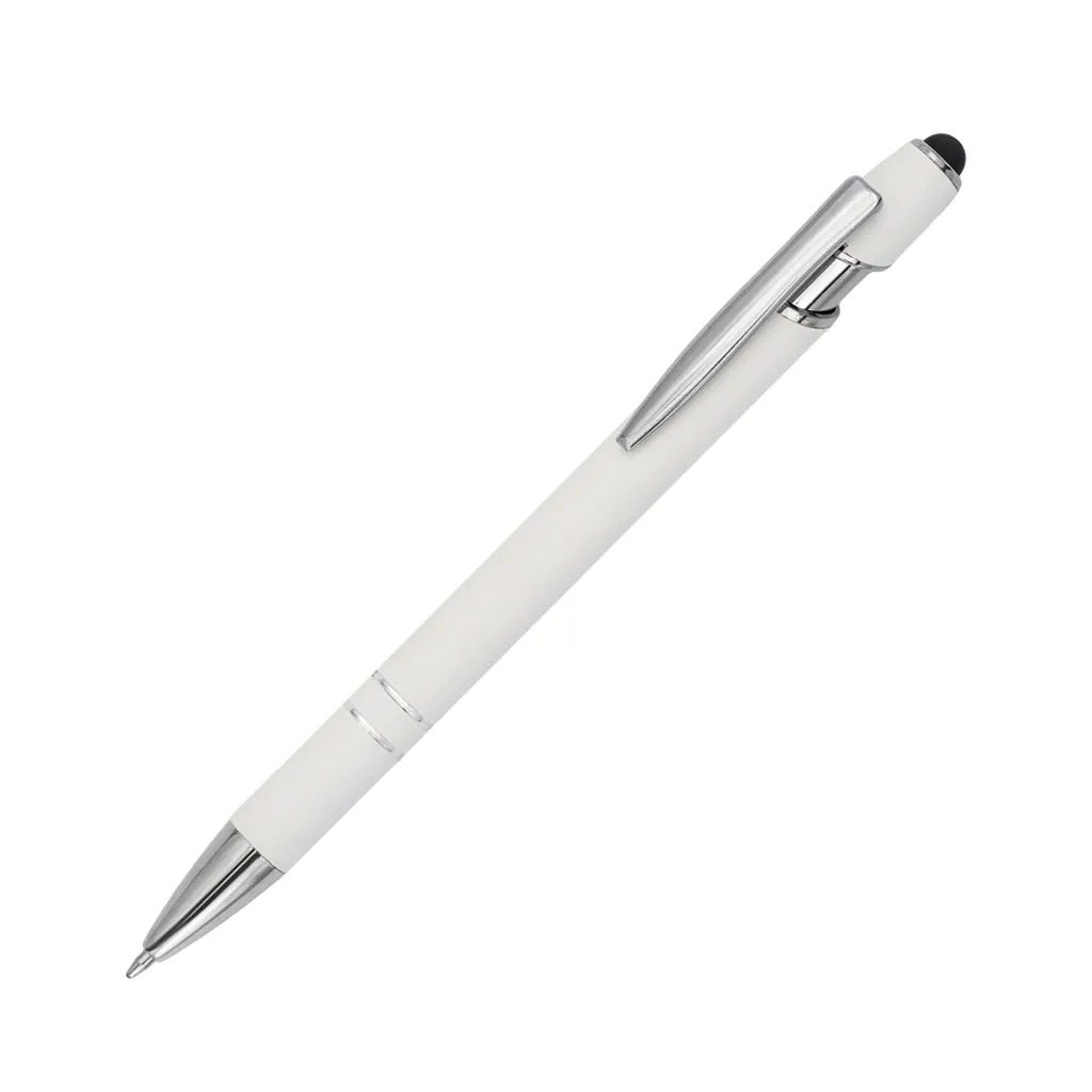 Aluminum pen with a pleasant-to-touch, satin finish with silver elements. Equipped with a touch screen tip. Blue refill.