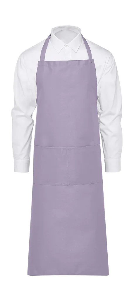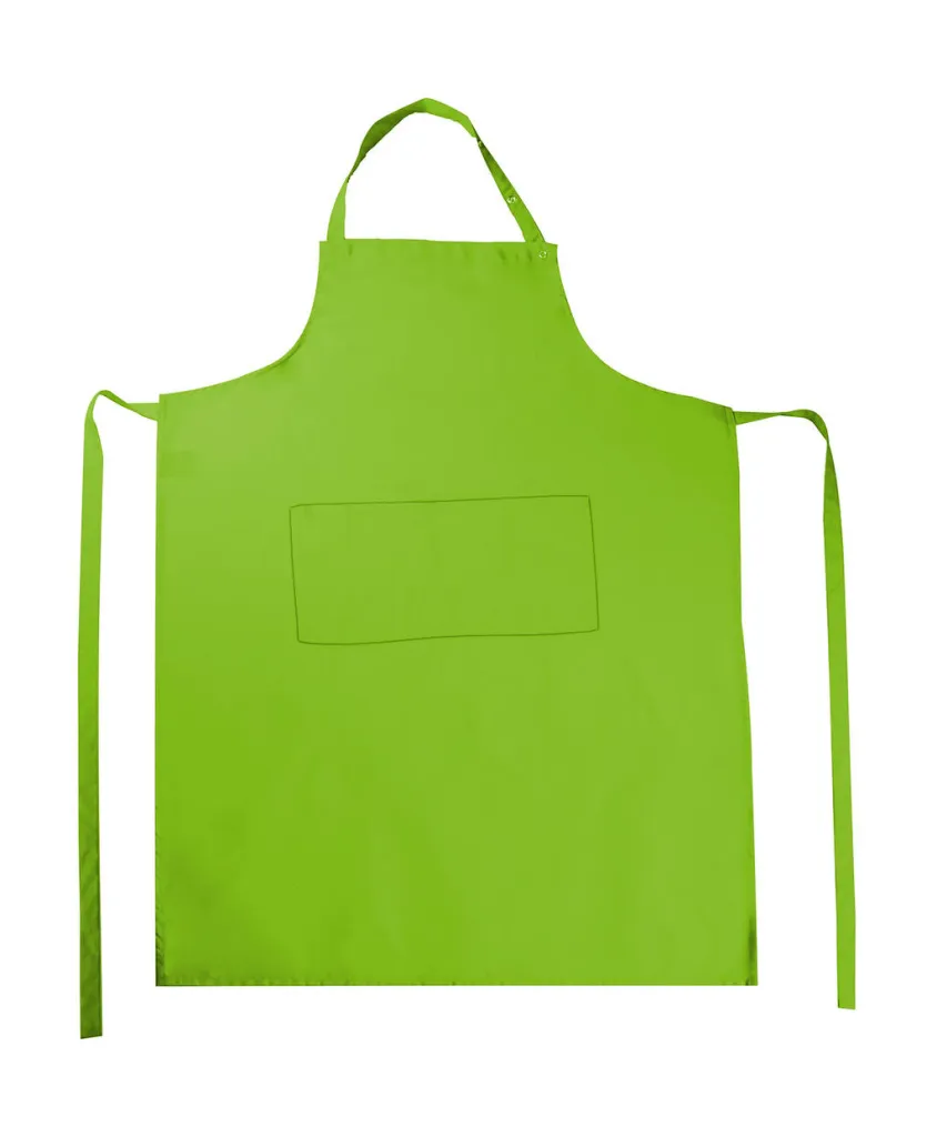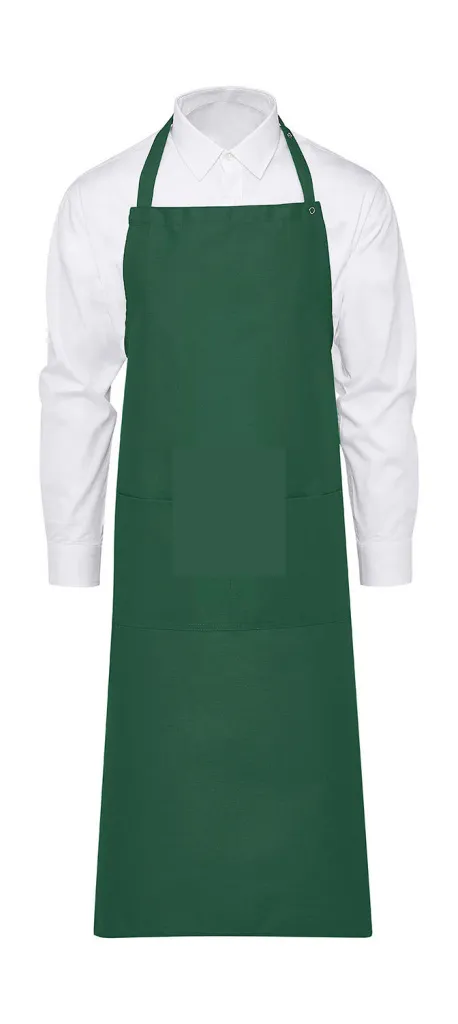 ·205 g/m² ·65% Polyester, 35% Cotton ·Easy care ·Reactive dyed ·Colourfast ·Functional, comfortable bib apron ·Adjustable neck tie ·Divided patch pocket ·Ties with bar-tacked seams ·Dimensions: 78 x 110 cm ·Washable up to 60°C