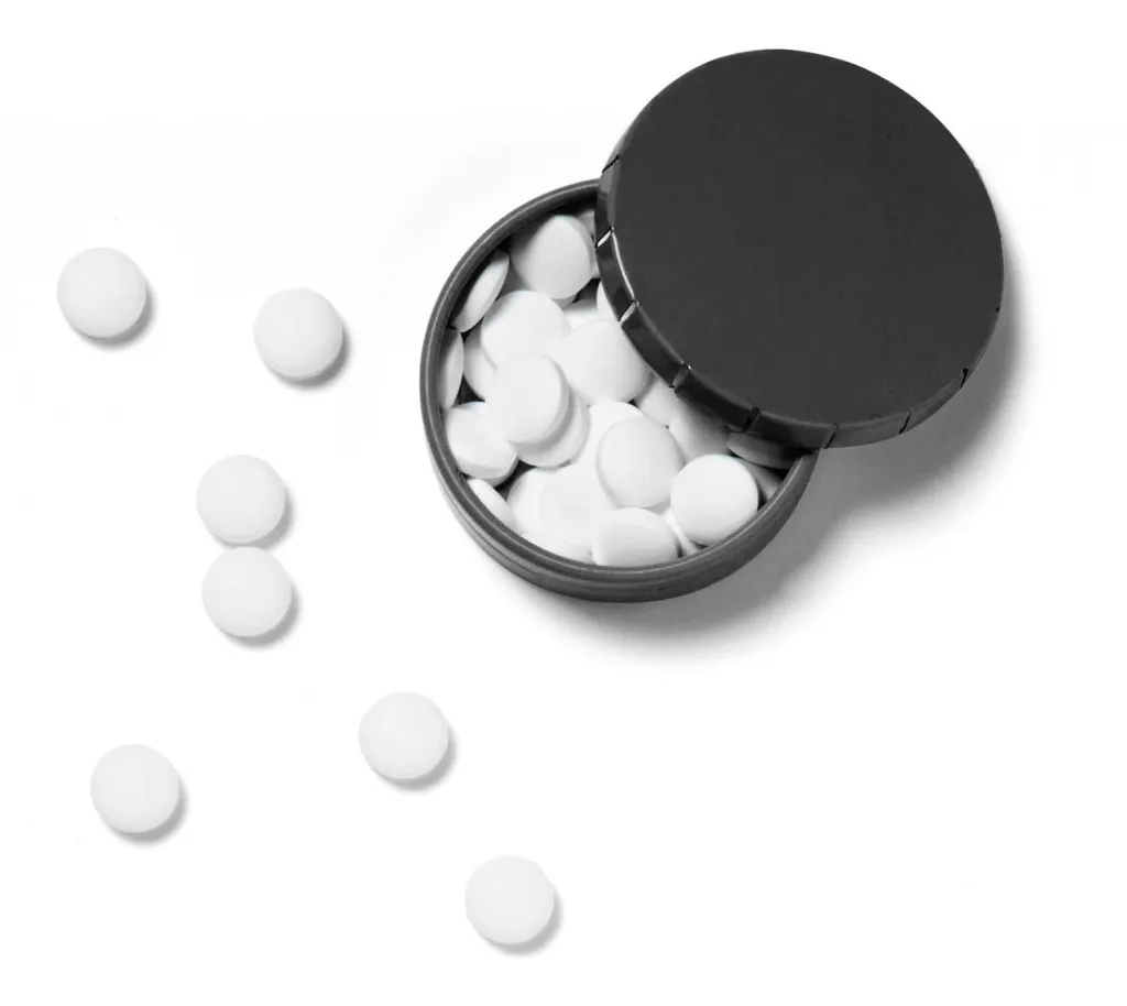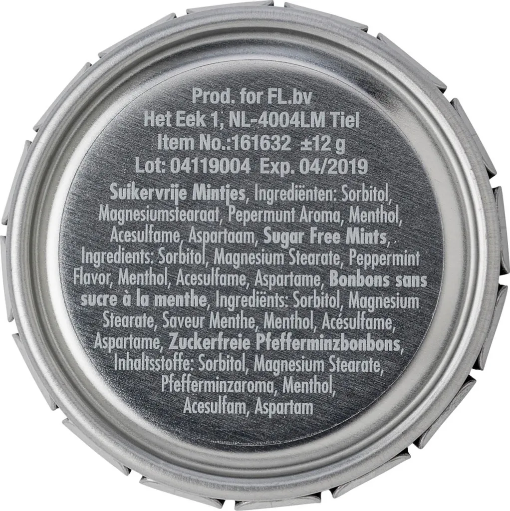 Metal mint tin with a click type lid, with approximately 40 sugar free mints.