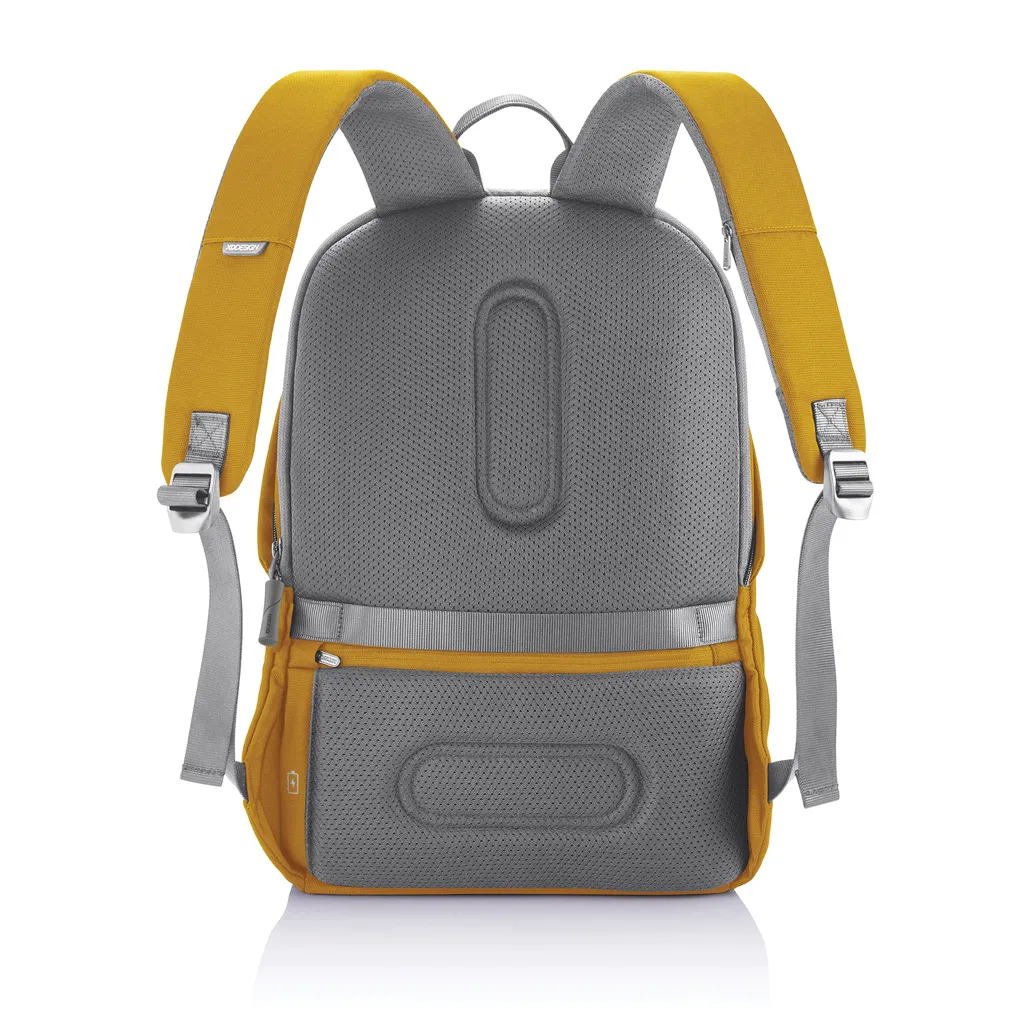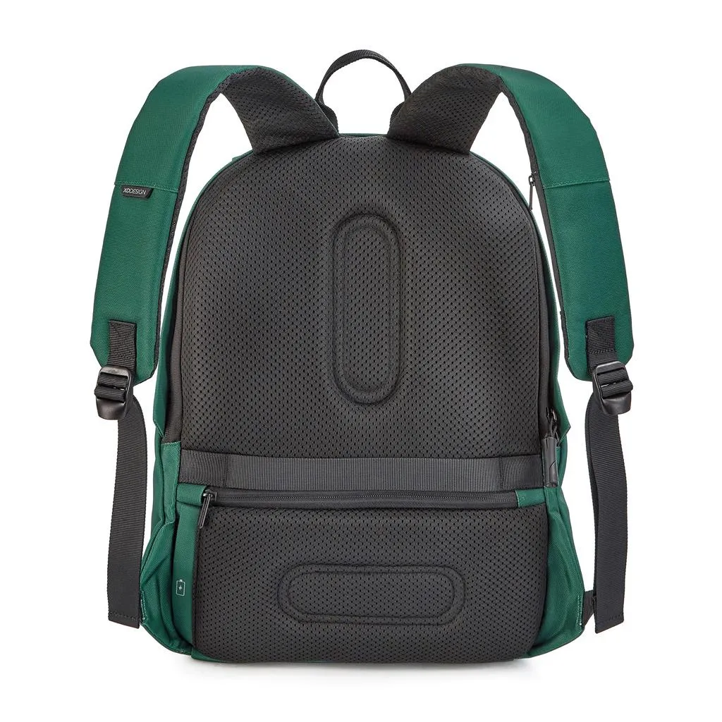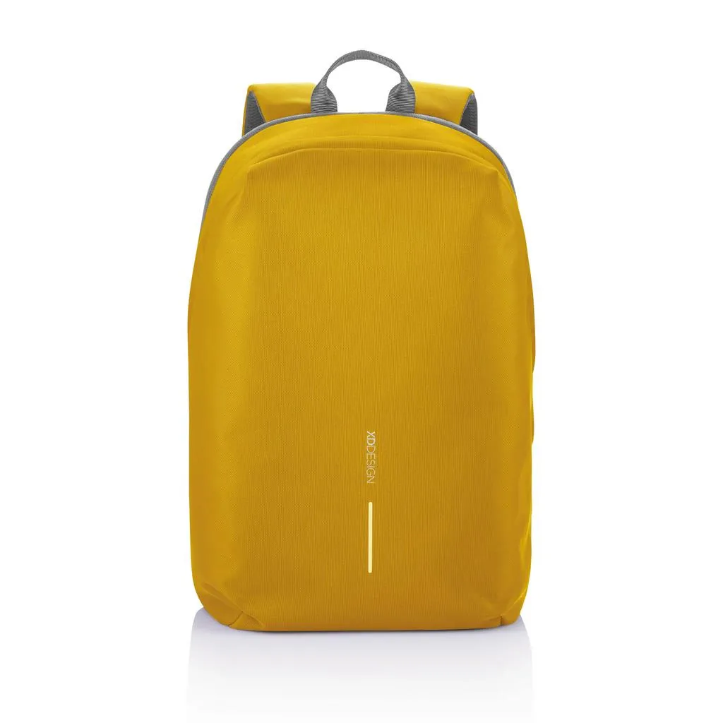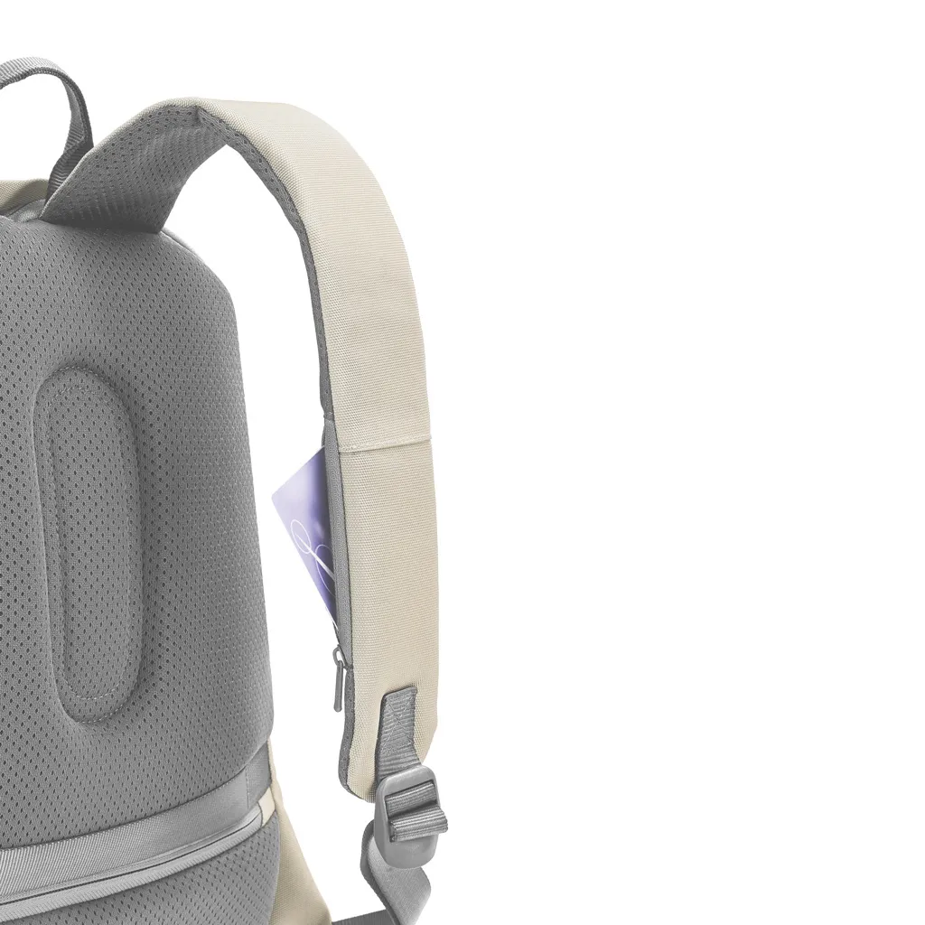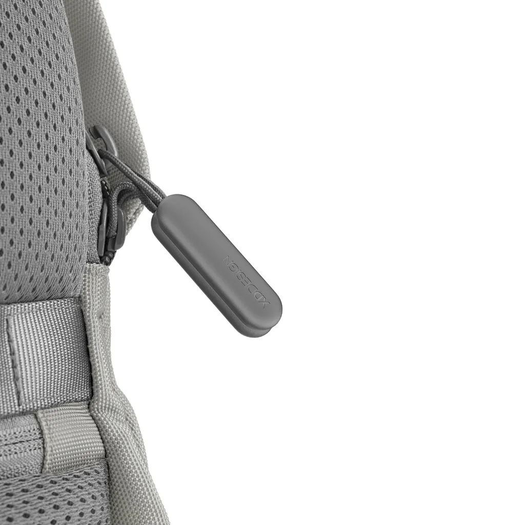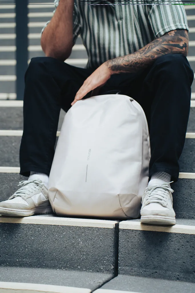 For university, school, work or your next trip, the Bobby Soft Backpack is ready! The iconic Bobby anti-theft design with hidden RFID protected pockets, no front access and hidden zippers is now complemented with a safe zipper puller on the main compartment. In the main compartment, you can easily organize your gear with a padded 15.6" laptop compartment, notebook pocket, smart pockets and a keychain clip. The top of the backpack is expandable giving additional space. This backpack is also equipped with an integrated USB charging port and water repellent material. Made from R-pet materials and AWARE™ tracer. With AWARE™, the use of genuine recycled fabric materials and water reduction is guaranteed, by using the AWARE disruptive physical tracer and blockchain technology. Each Bobby Soft saves 22L of water and reuses 37 plastic bottles. Registered design®