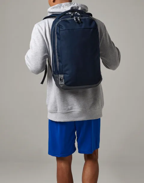 ·100% Polyester (600D/420D) ·Water-resistant fabric ·Padded grab handle ·Ergonomic shoulder straps with holders for wireless headphones ·Breathable padded mesh back panel ·Main compartment with wide zip opening ·Front pocket with organiser section, internal slip pocket ·External bottle pocket ·Metal ventilation eyelets ·TearAway label for ease of rebranding ·Capacity: 23 litres ·Dimensions: 30 x 50 x 18 cm ·Max. embroidery: 20 tubular hoop ·Max. print area: 20 x 30 cm