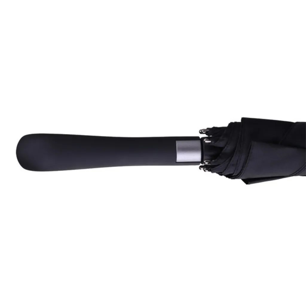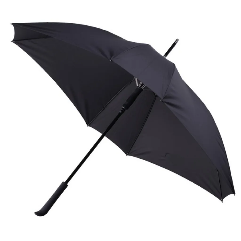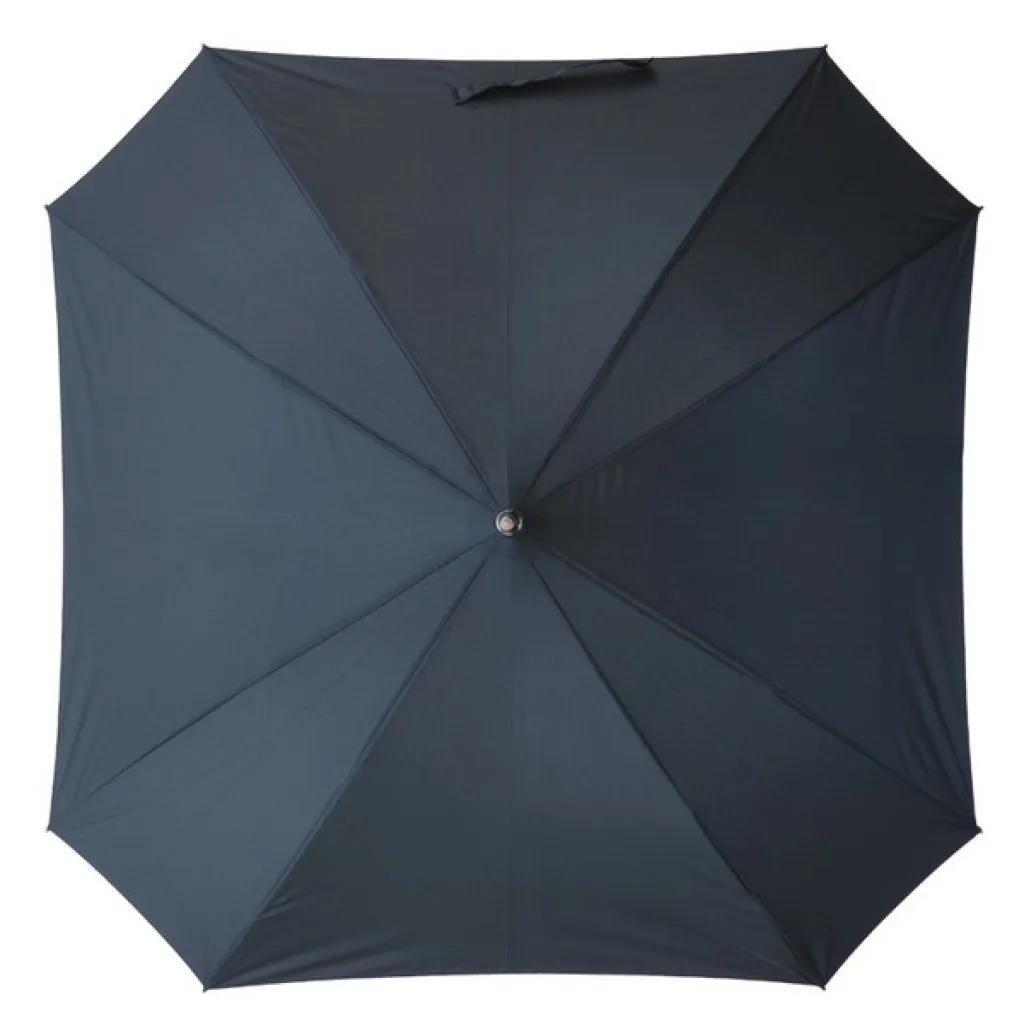 Classic square shaped umbrella with 8 panels of pongee 190T polyester with soft plastic handle and fiberglass ribs, windproof. Automatic opening.