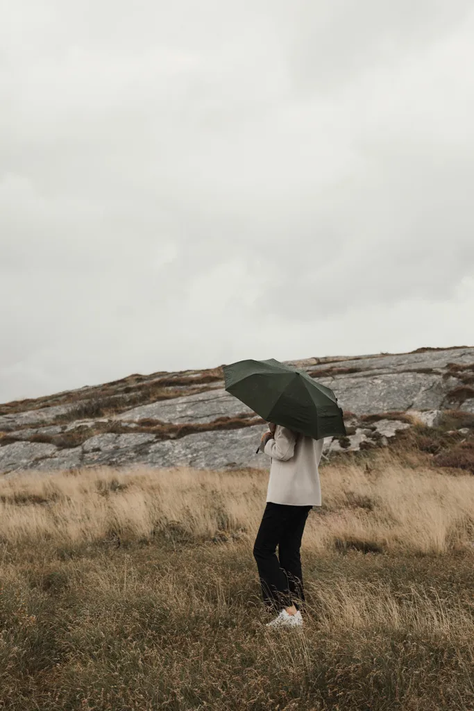 This stylish and modern 21-inch umbrella will keep you dry even on the rainiest of days. The compact size makes it the perfect confidant for life on the go. Crafted from premium 190T pongee RPET fabric, it provides excellent rain protection whilst it boasts a sleek design. Designed with a metal shaft and full fiberglass frame, this umbrella ensures strength and durability for challenging weather. The minimalist ABS plastic handle, with a comfortable rubber finish, adds contemporary flair and a secure grip. Featuring an auto-open/manual-close system for ease of use. The storage pouch in the classic Baltimore PU fabric provides additional protection when not in use. Stormproof. With AWARE™ tracer technology, this umbrella confirms the genuine use of recycled materials, underscoring our commitment to responsible sourcing.
