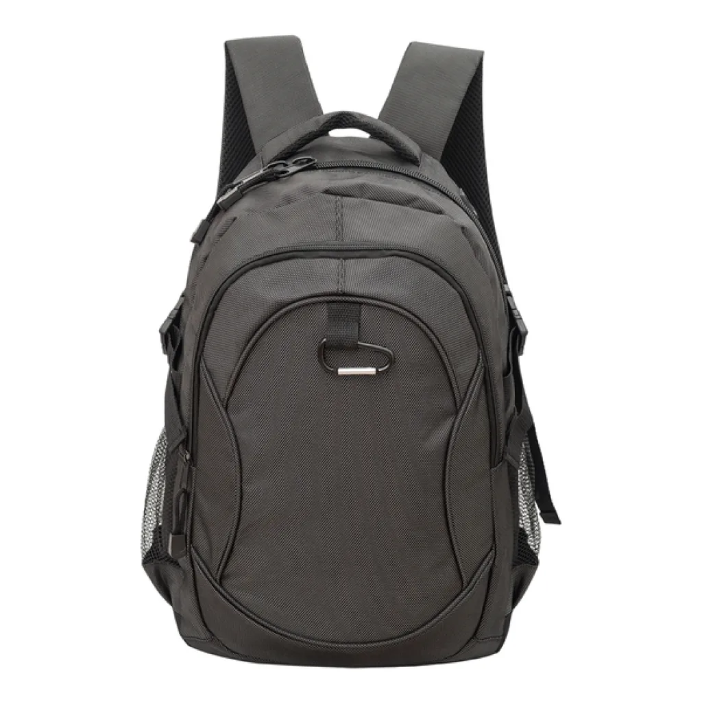 Practical and solid backpack has main compartment closed with strong zipper. Also small zipped inner pocket. Big zipped front pocket. 2 side mesh pockets. 2 side straps with buckles. Earphones hole. Polyester 210 T lining. Soft back and shoulder straps. Capacity 16L.