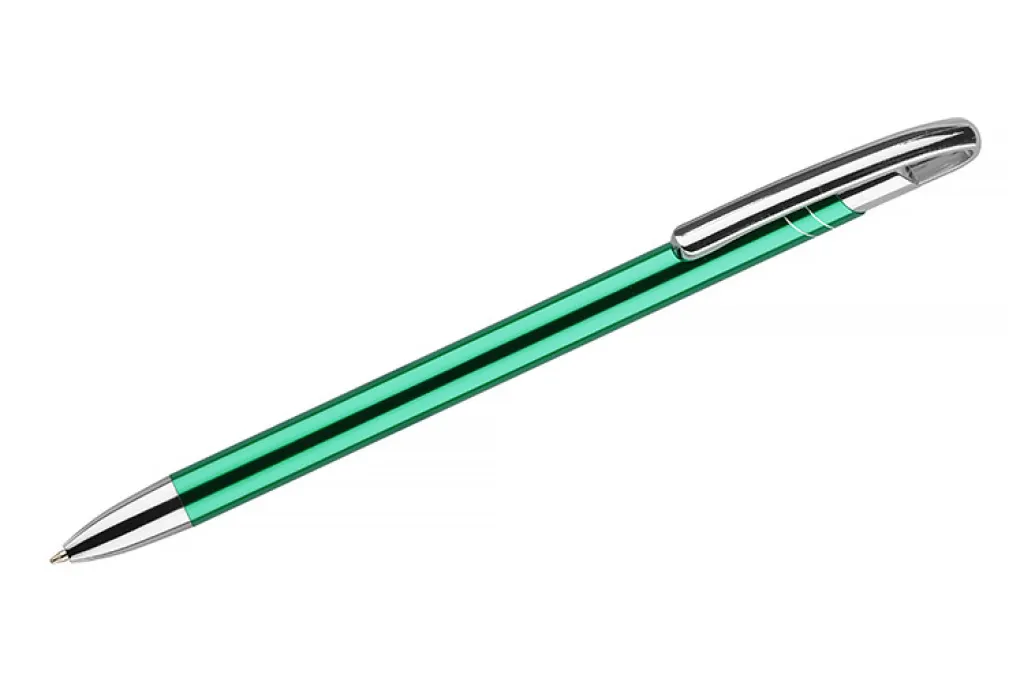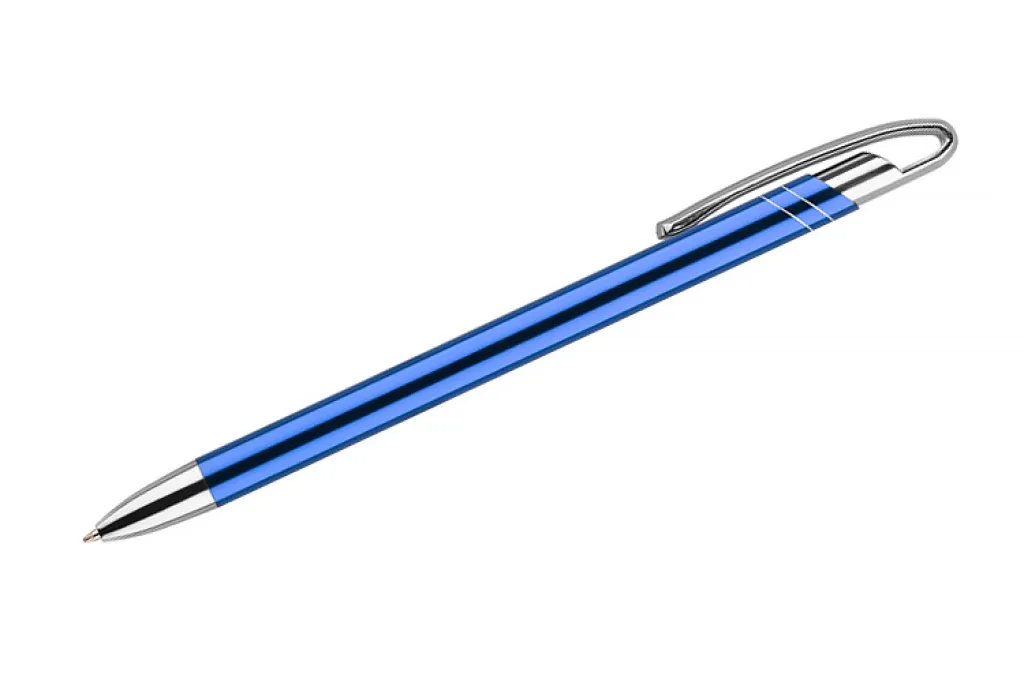 Thin and slick metal pen with metallic finish. Clip and tips in silver chrome finish. AVALO stands out from other similar pens by the original clip design. The barrel is decorated with two slanted silver stripes. Blue 0.7 mm-thick refill.