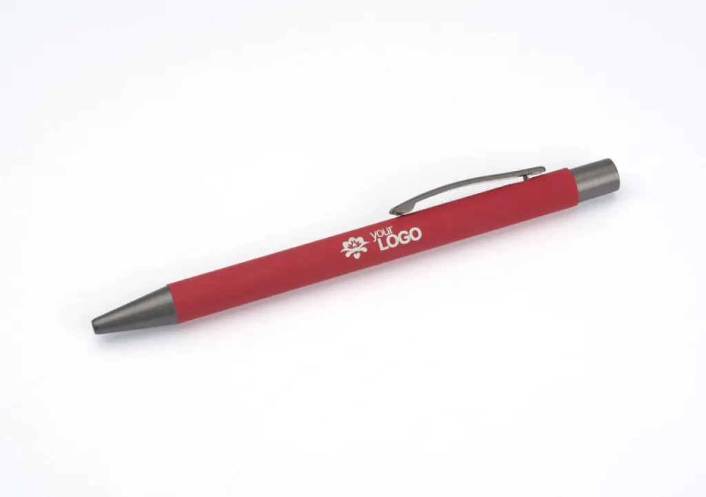 The GOMA pen is a simple design combined with a rubberised surface with a pleasant feel to the touch. The whole composition is presented in bright, matt colours. Made of aluminium. Graphite finish. Black refill.