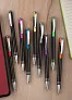 The aluminium IGGO pen has a simple black barrel combined with a contrasting, colourful button decorated with an interesting, grated structure. A pen decorated with two straps at the bottom. Chrome-plated finish makes it look elegant. G2 type blue 0.7 mm-thick refill.