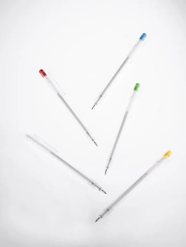 The KLIIR pen is made entirely of recycled PET (rPET). This simple gadget shows us how we can consciously manage plastic waste and create new useful items from it. The transparent, colorless body of the pen is nicely combined with the button in vivid colors. Retractable ballpoint pen, blue refill type G2.